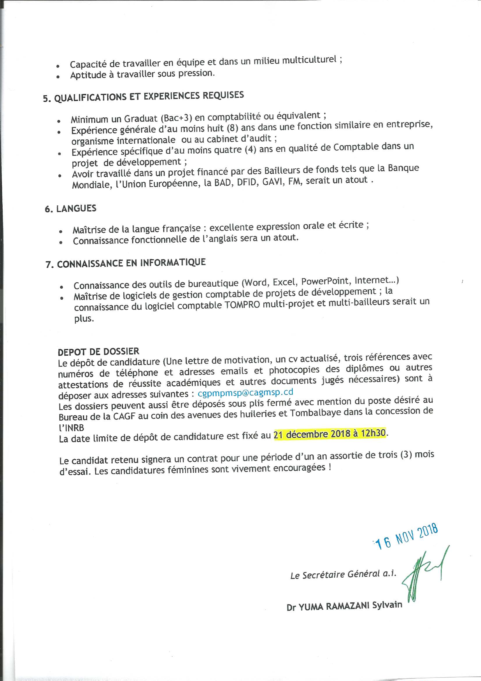 RECRUTEMENT D’UN COMPTABLE À LA CELLULE D’APPUI ET DE GESTION FINANCIÈRE (CAGF).