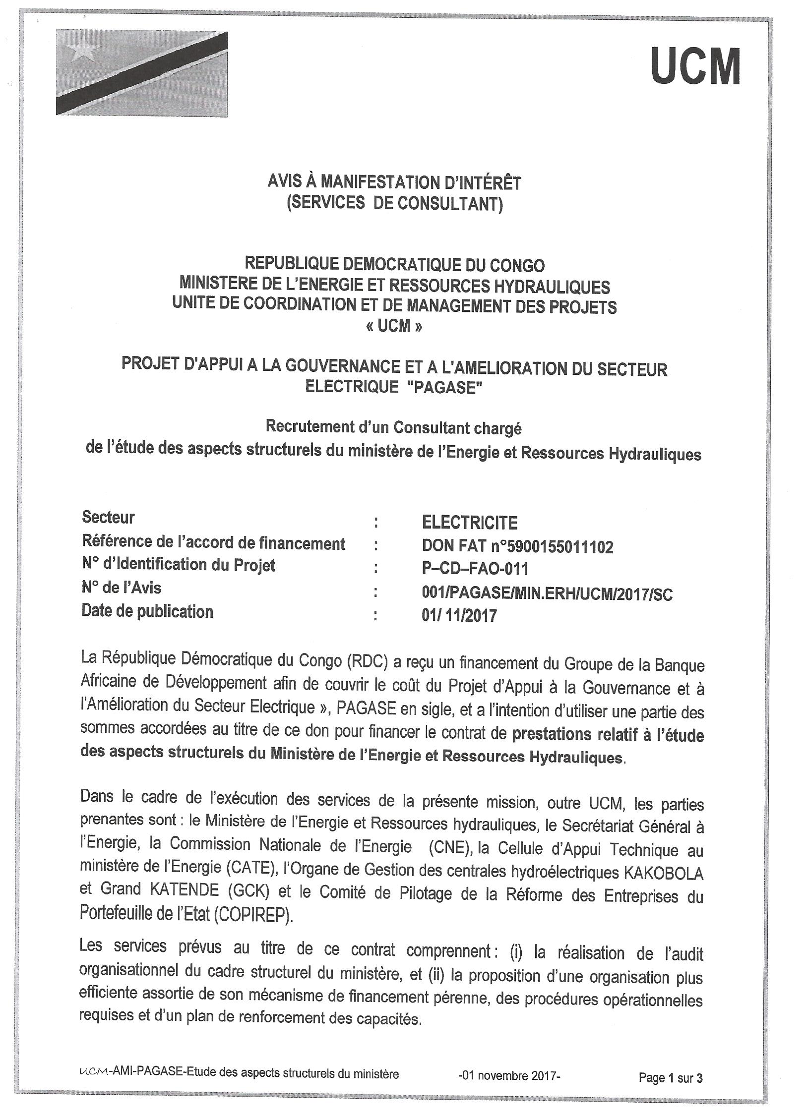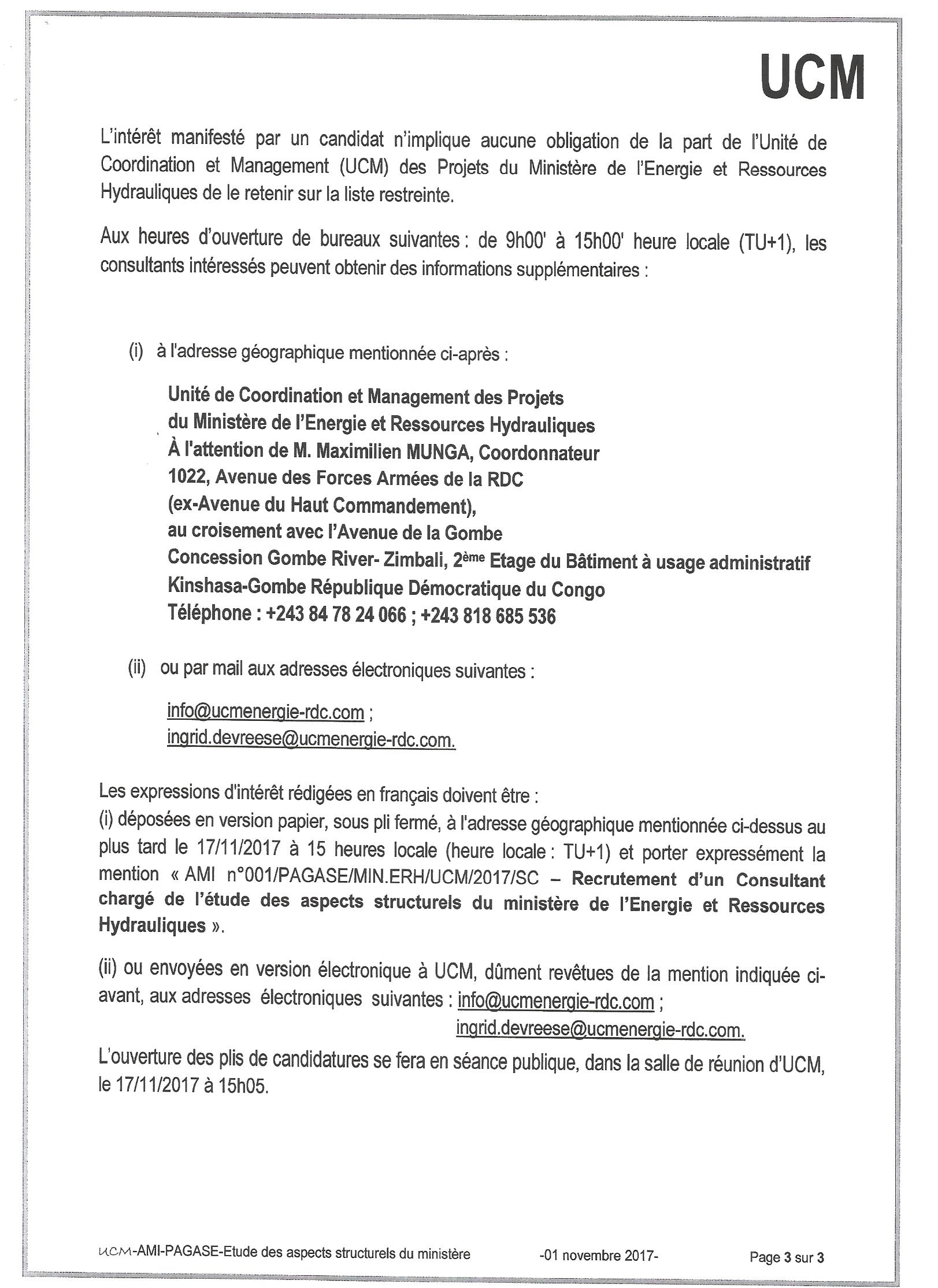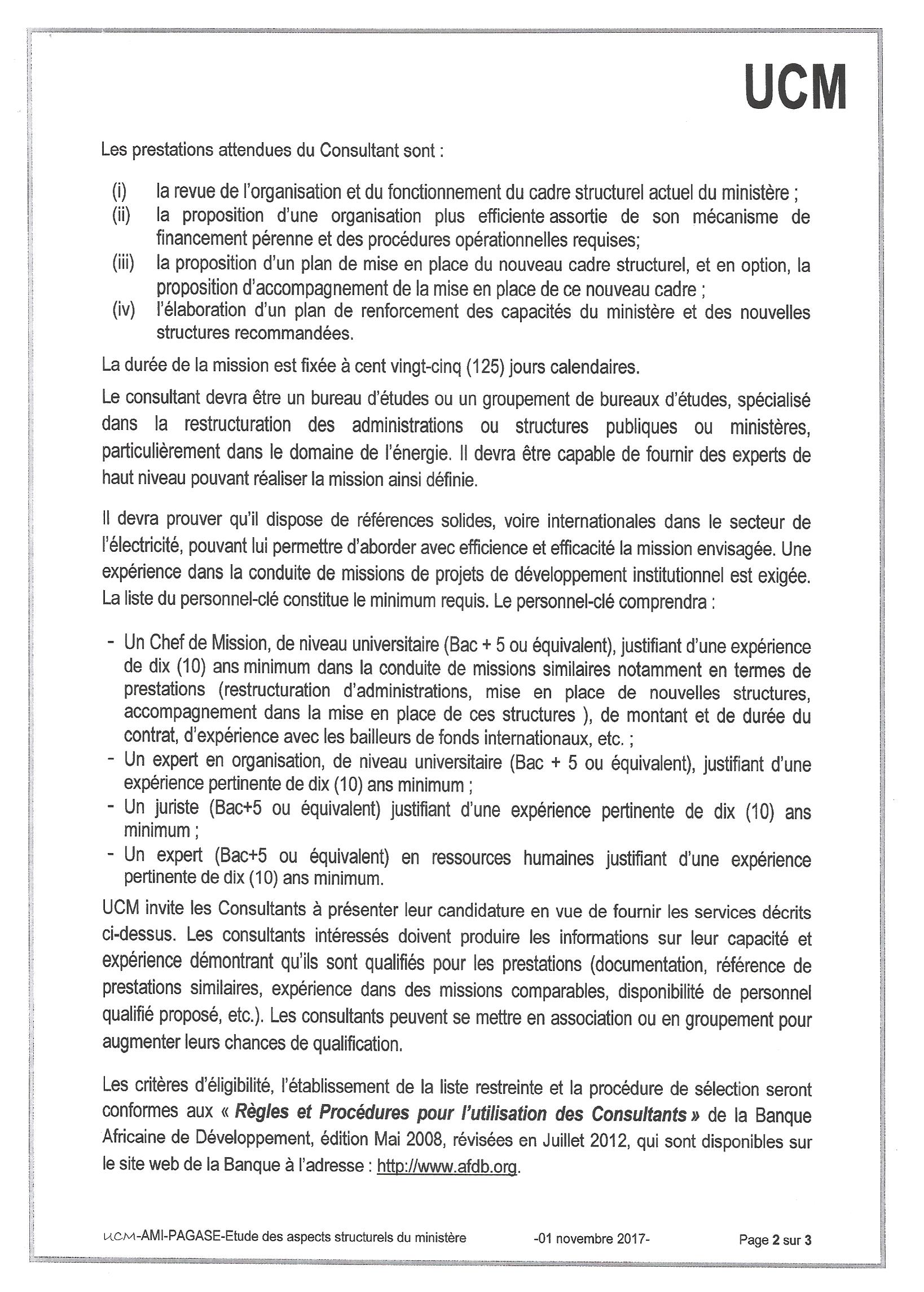 RECRUTEMENT D’UN CONSULTANT CHARGÉ DE L’ÉTUDE DES ASPECTS STRUCTURELS DU MINISTÈRE DE L’ENERGIE ET RESSOURCES HYDRAULIQUES.