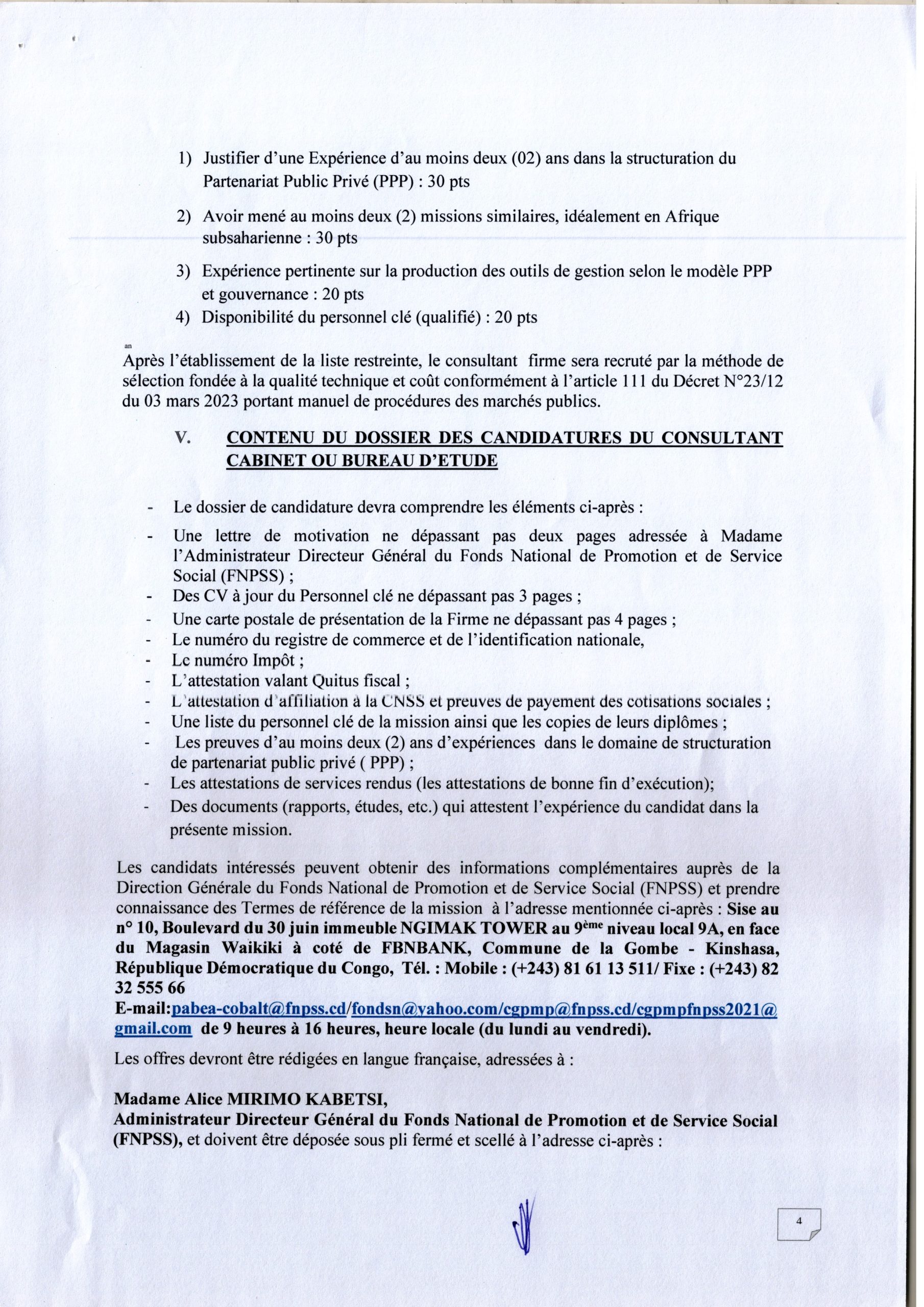 Recrutement d’un consultant firme chargé de la structuration du partenariat-privé au sein du FNPSS pour la gestion des centres de promotion de l’entreprenariat des jeunes en agro-business dans la province du Haut-Katanga.