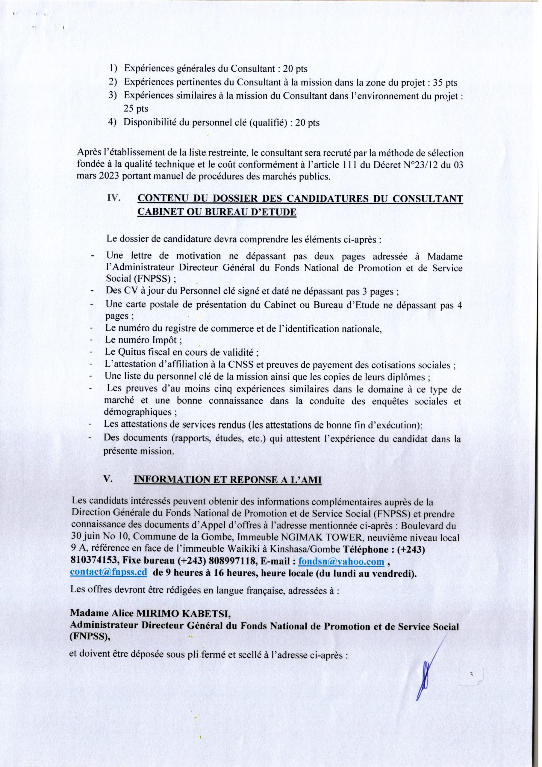 FONDS NATIONAL DE PROMOTION ET DE SERVICE SOCIAL