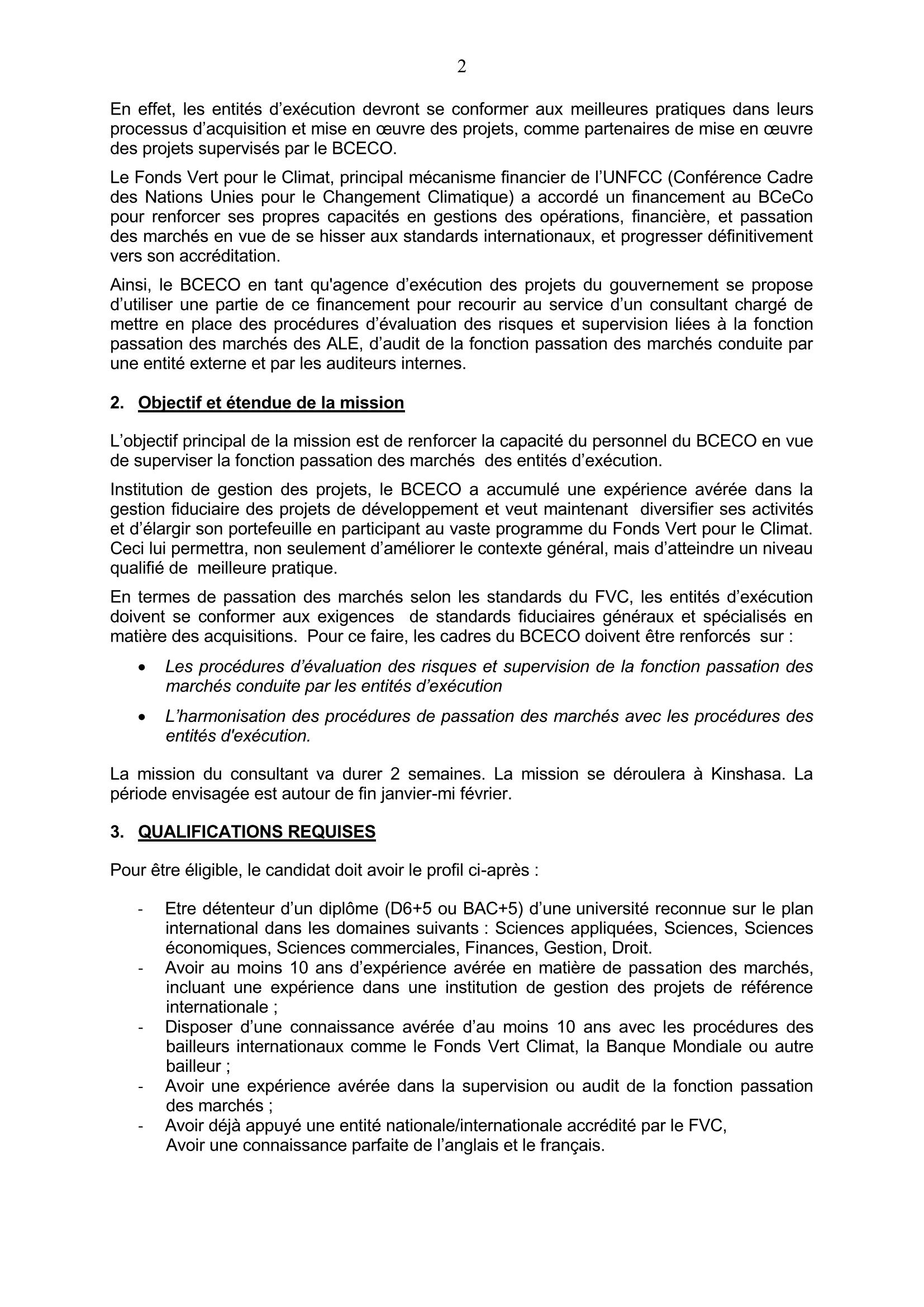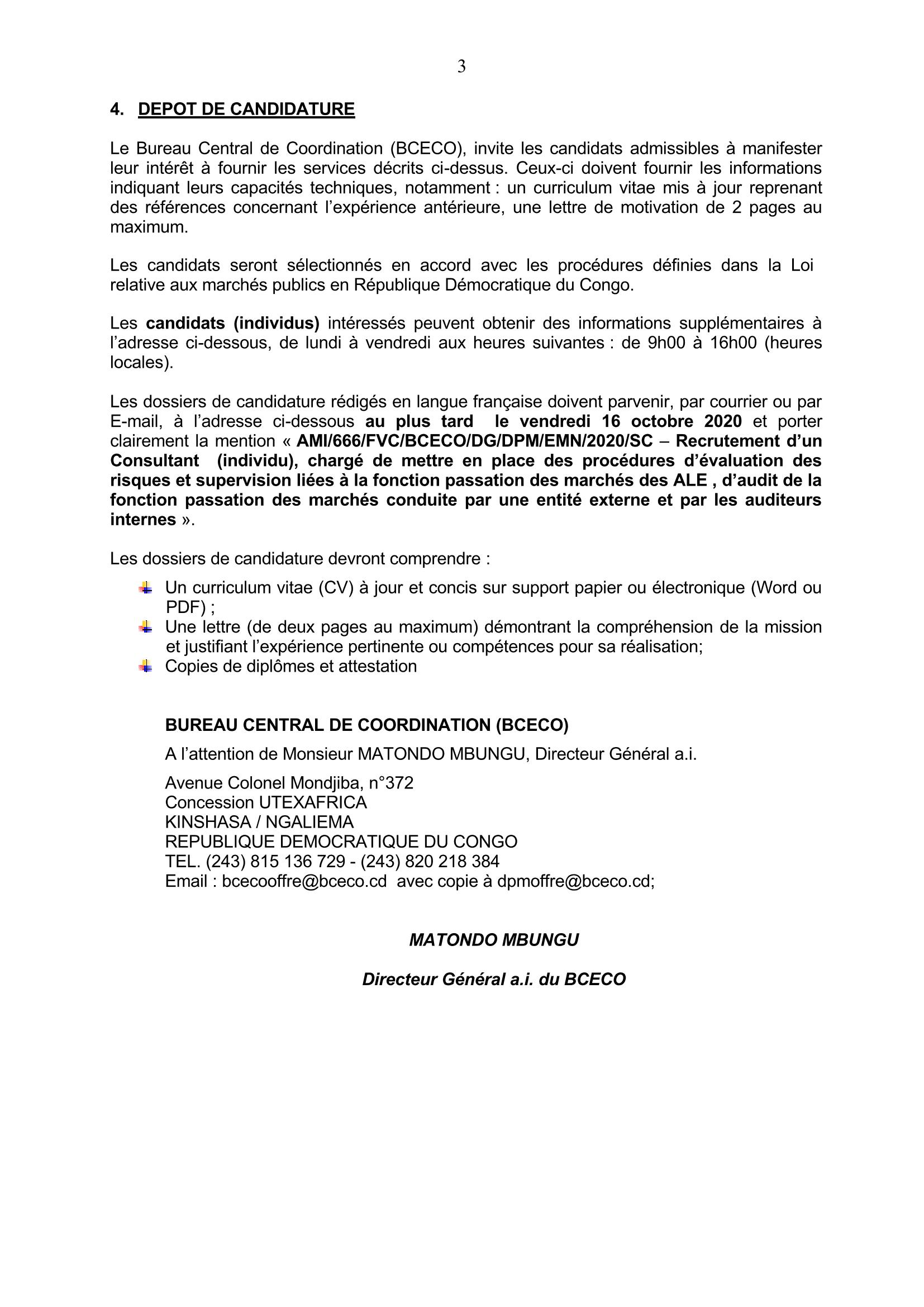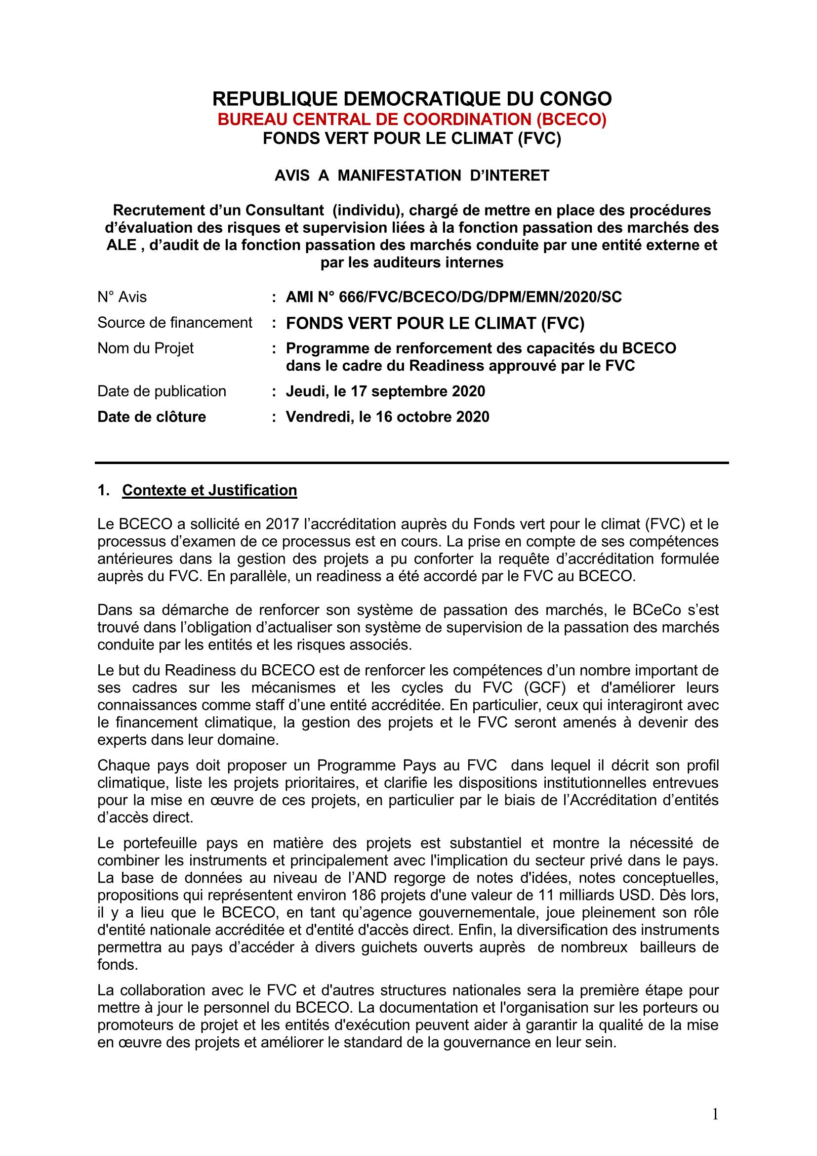 Recrutement d’un Consultant (individu), chargé de mettre en place des procédures d’évaluation des risques et supervision liées à la fonction passation des marchés des ALE , d’audit de la fonction passation des marchés conduite par une entité externe …