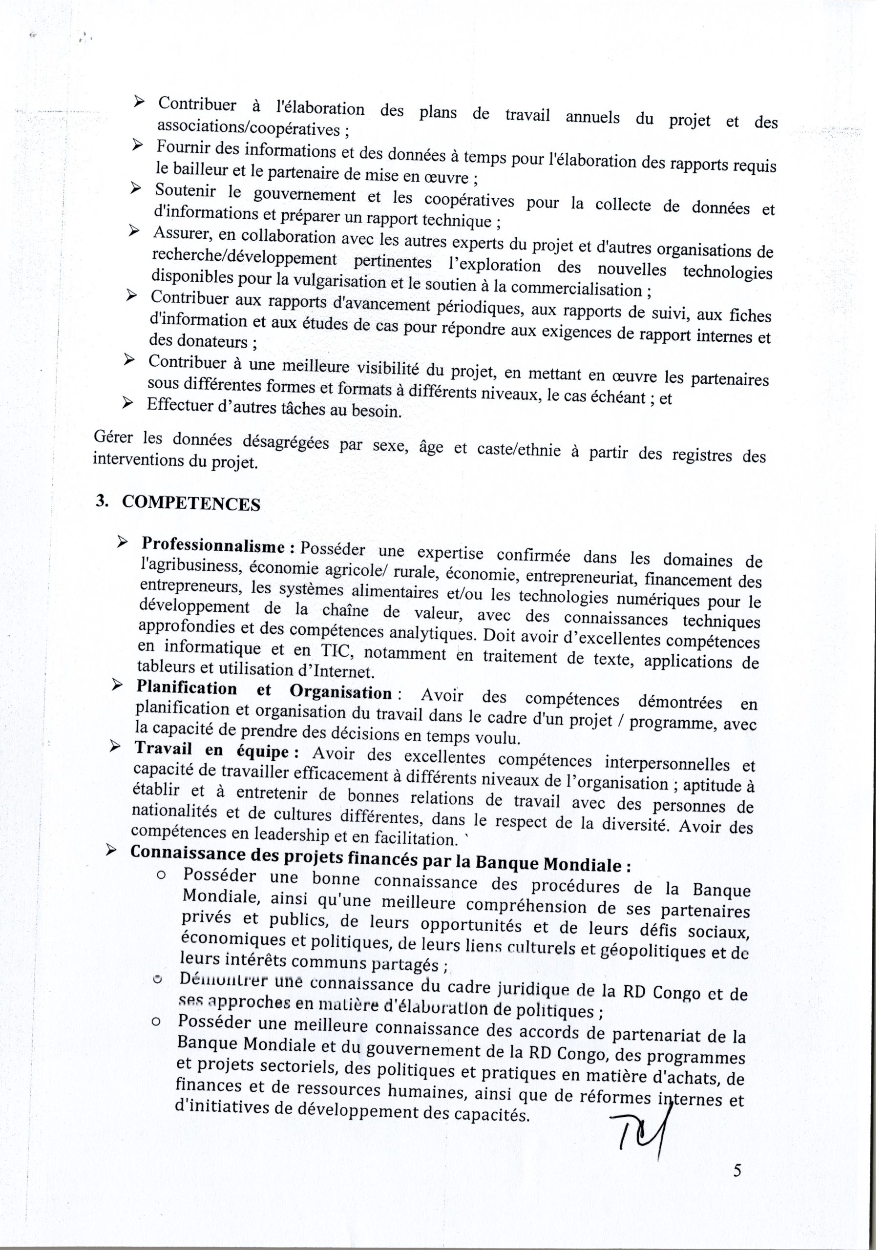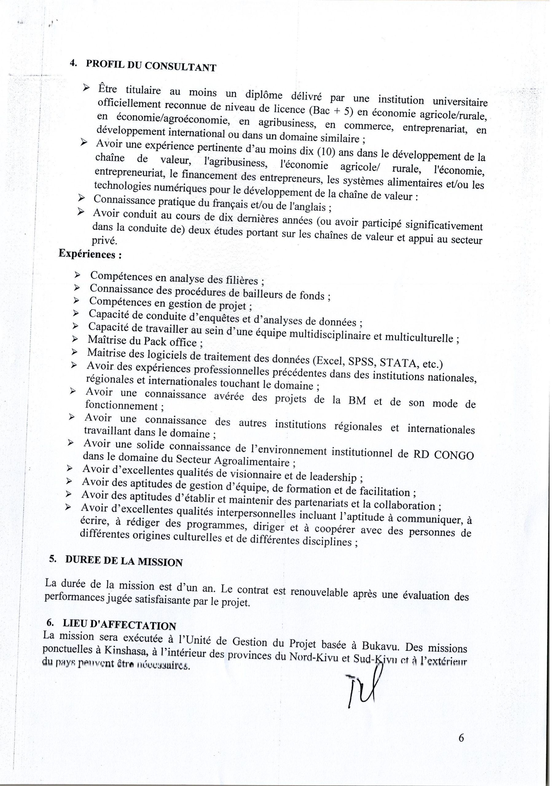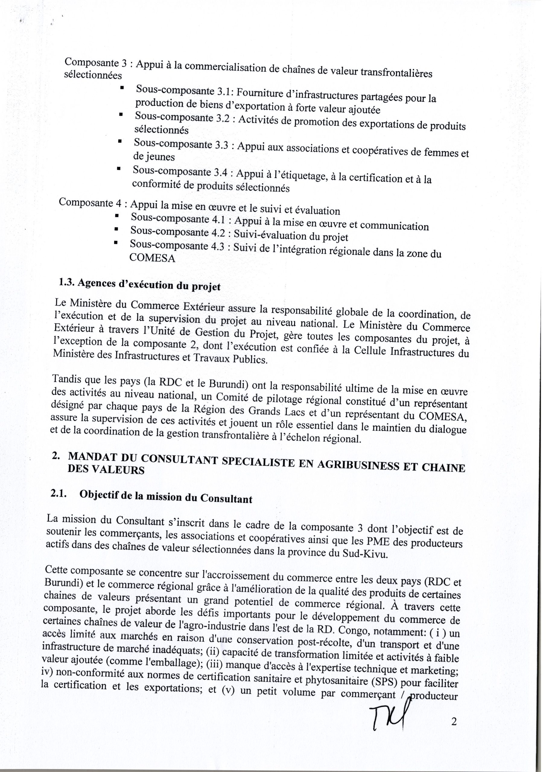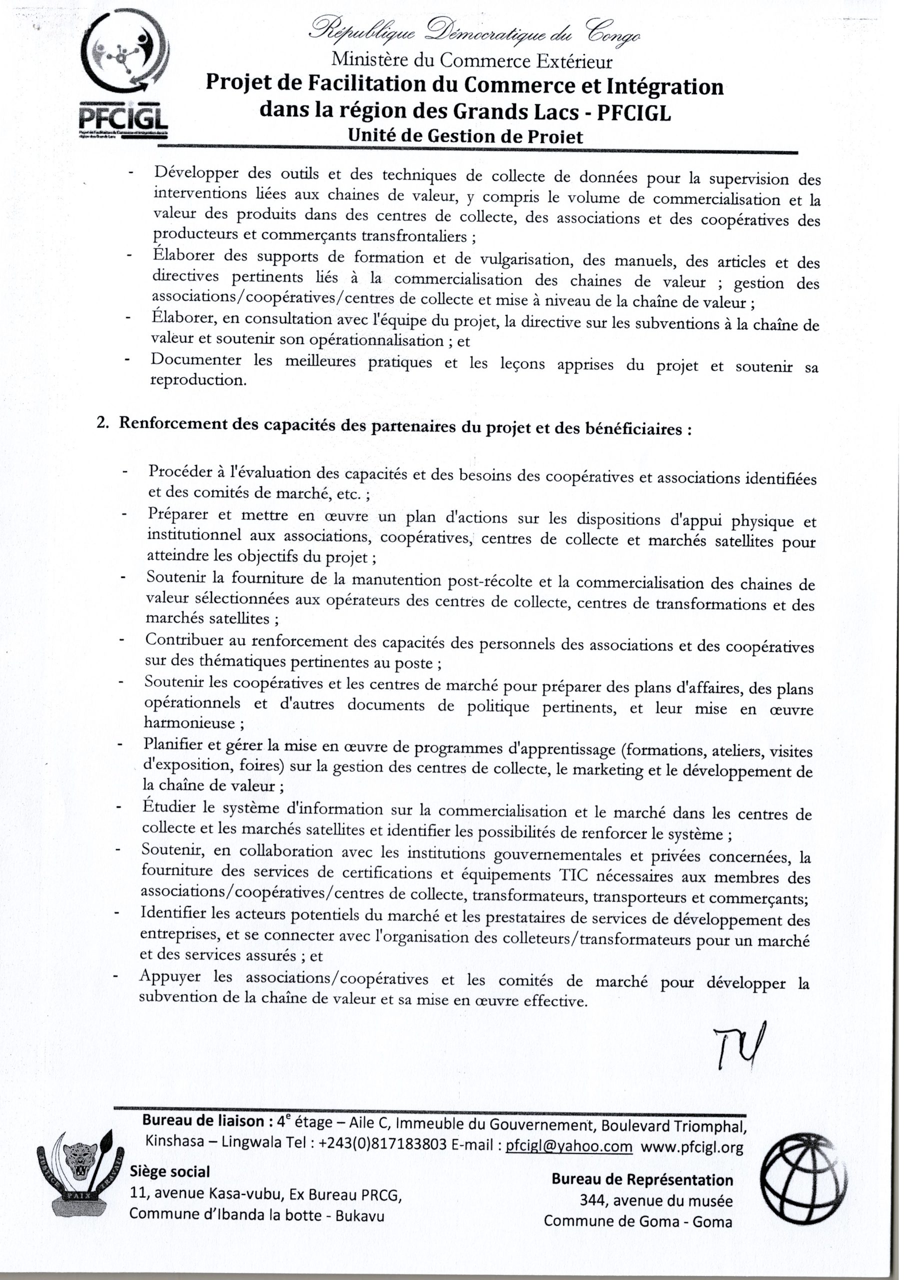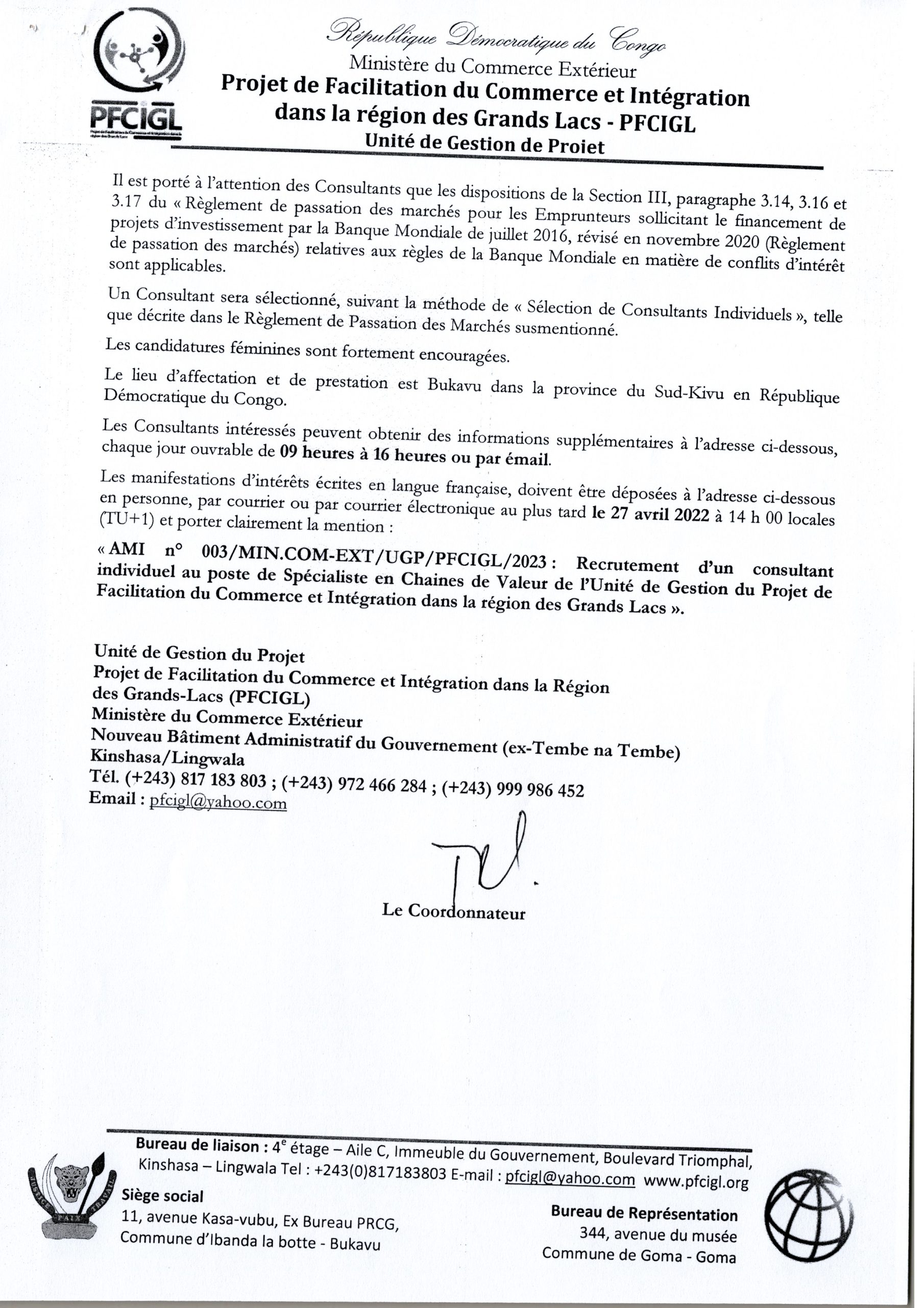 RECRUTEMENT D’UN CONSULTANT INDIVIDUEL AU POSTE DE SPECIALISTE EN CHAINES DE VALEUR AU SEIN DE L’UNITE DE GESTION DU PFCIGL ET TERMES DE REFERENCE CONSULTANT SPECIALISTE EN AGRIBUSINESS ET CHAINE DES VALEURS
