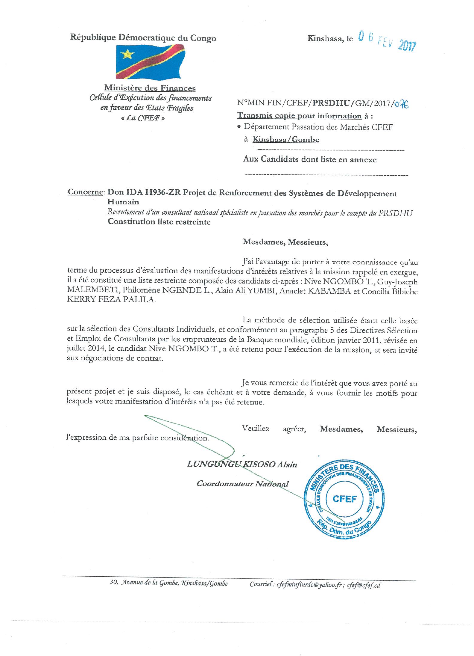 Recrutement d’un consultant national spécialiste en passation des marchés pour le compte du RRSDHU Constitution liste restreinte.