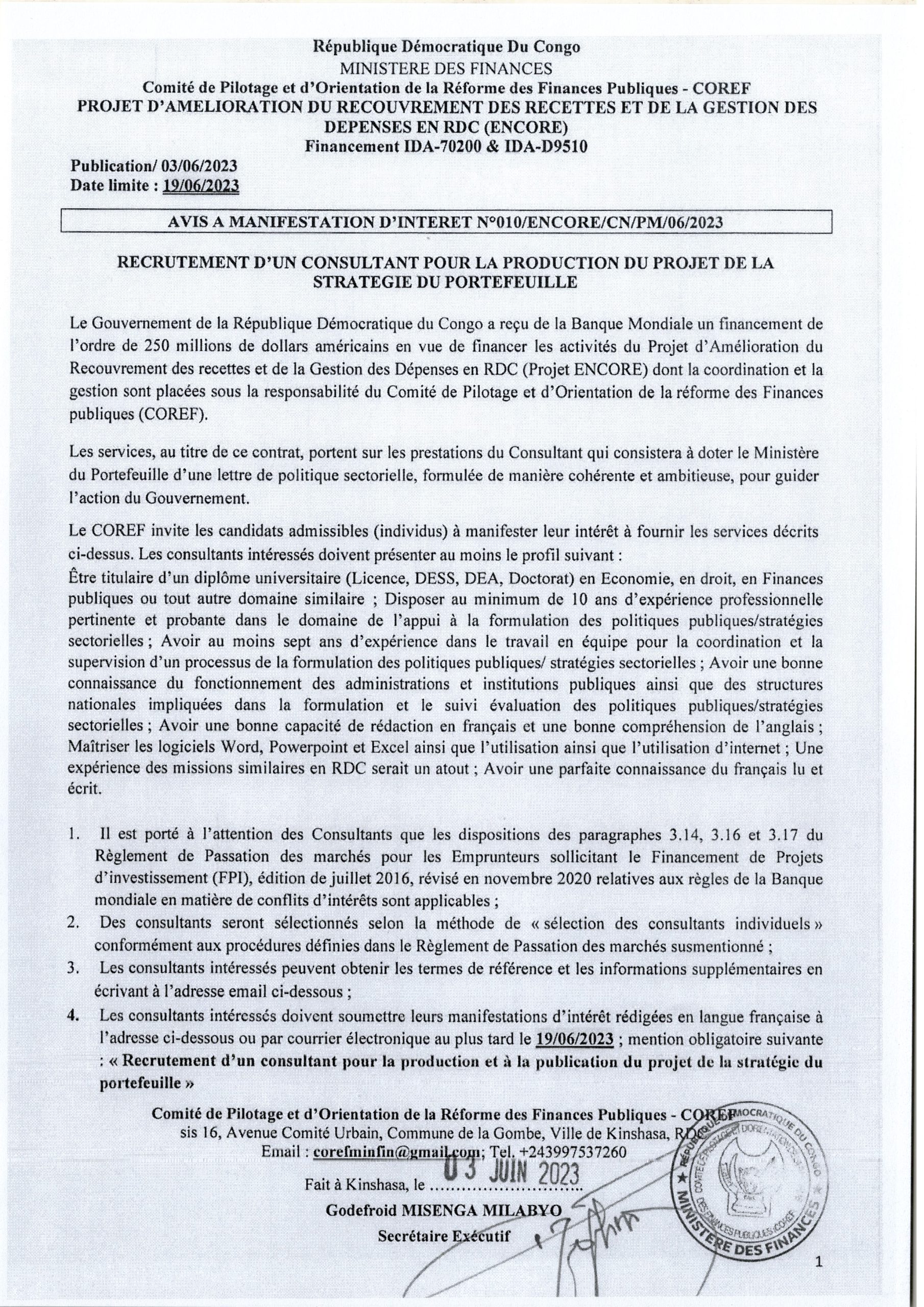 Recrutement d’un consultant pour la production du projet de la stratégie du portefeuille