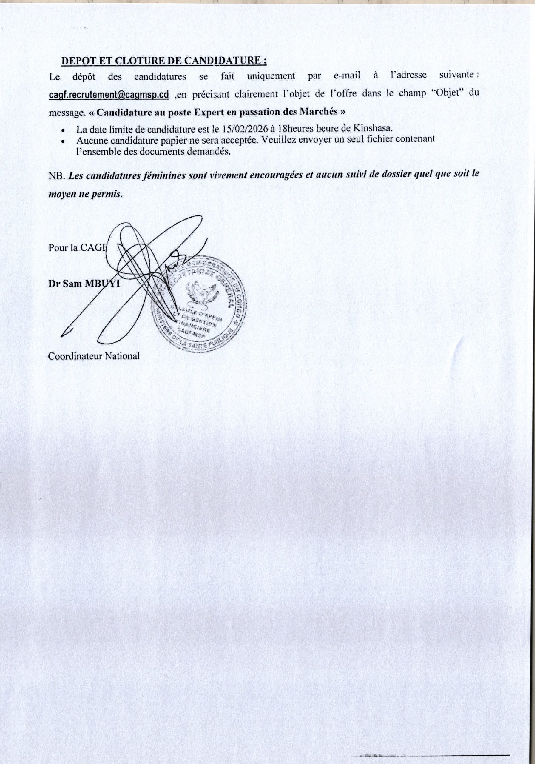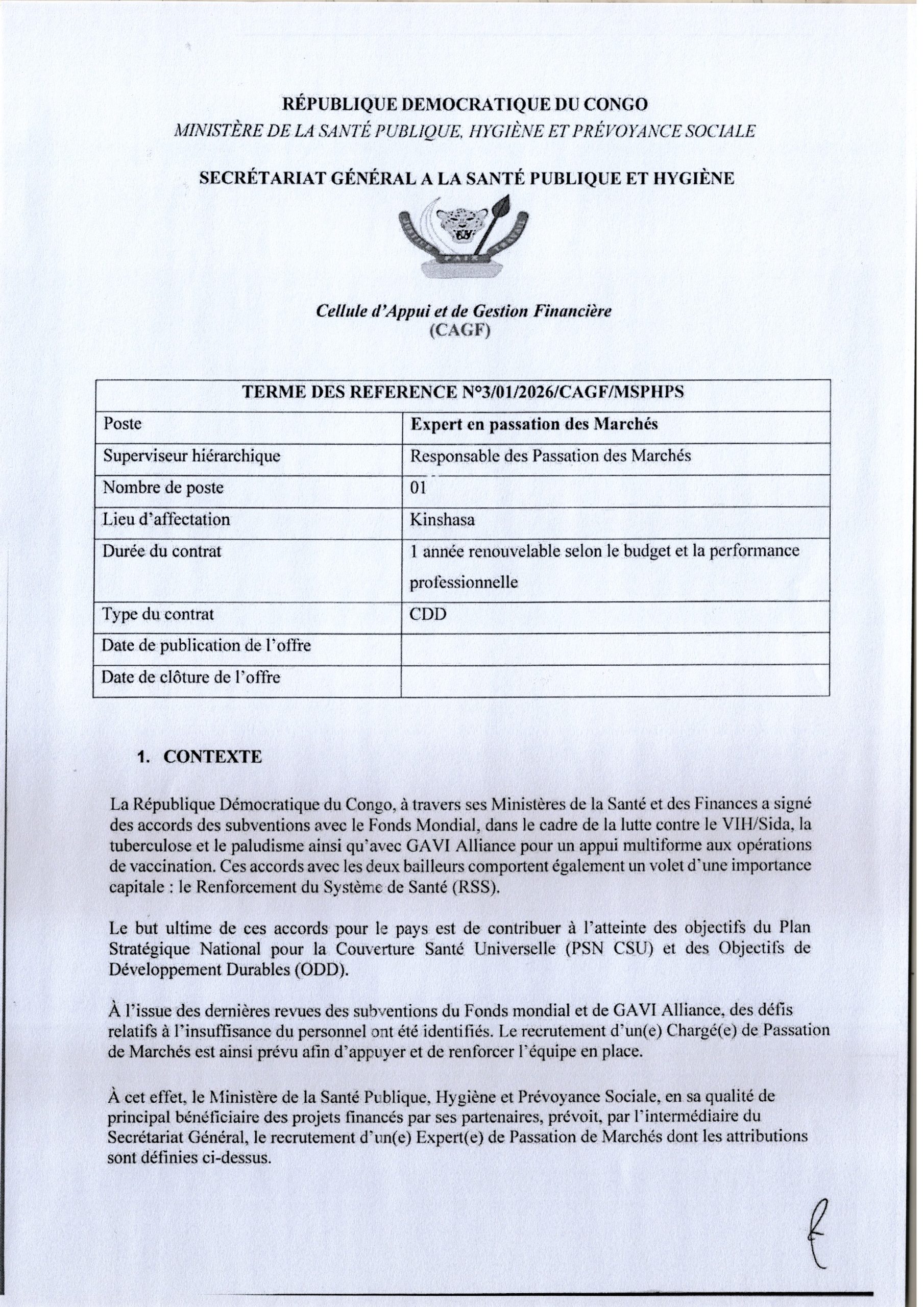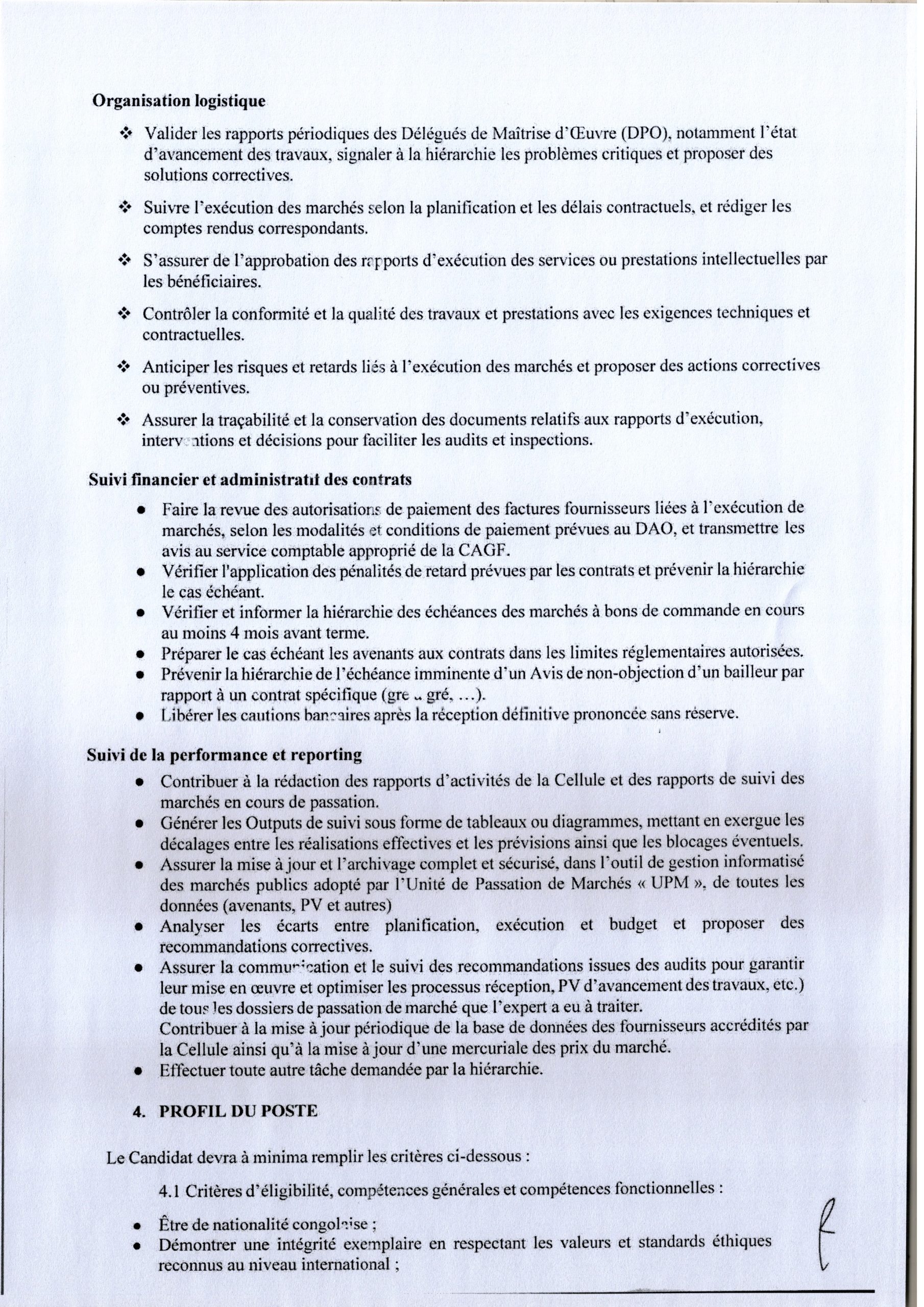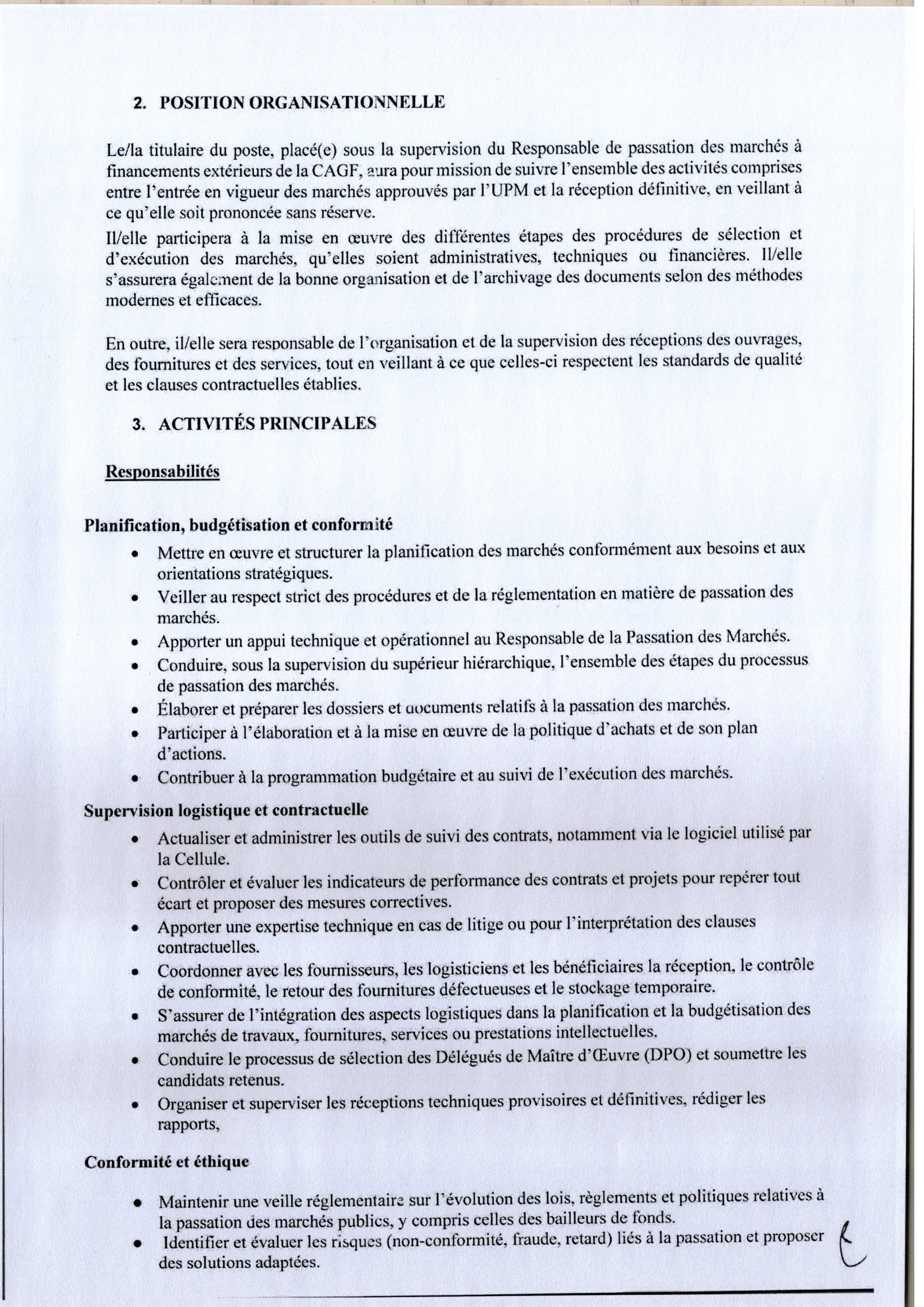 Recrutement d’un expert en passations des marchés au sein de la Cellule d’Appui et Gestion Financière.