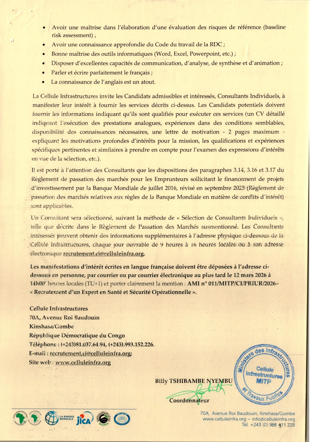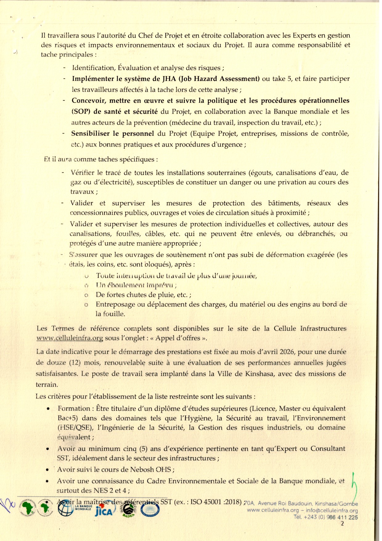 Recrutement d’un Expert en Santé et Sécurité Opérationnelle.