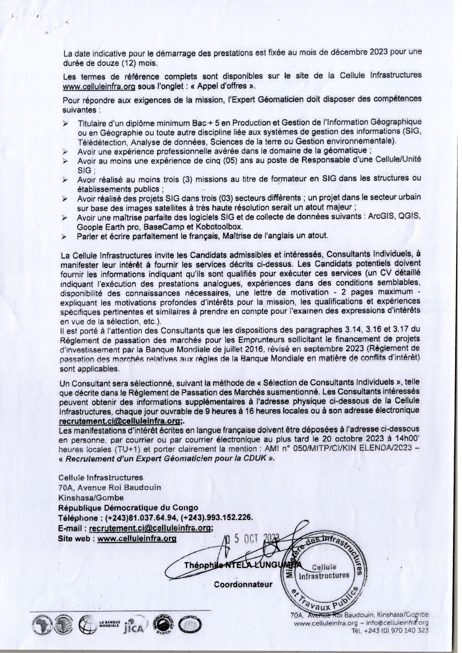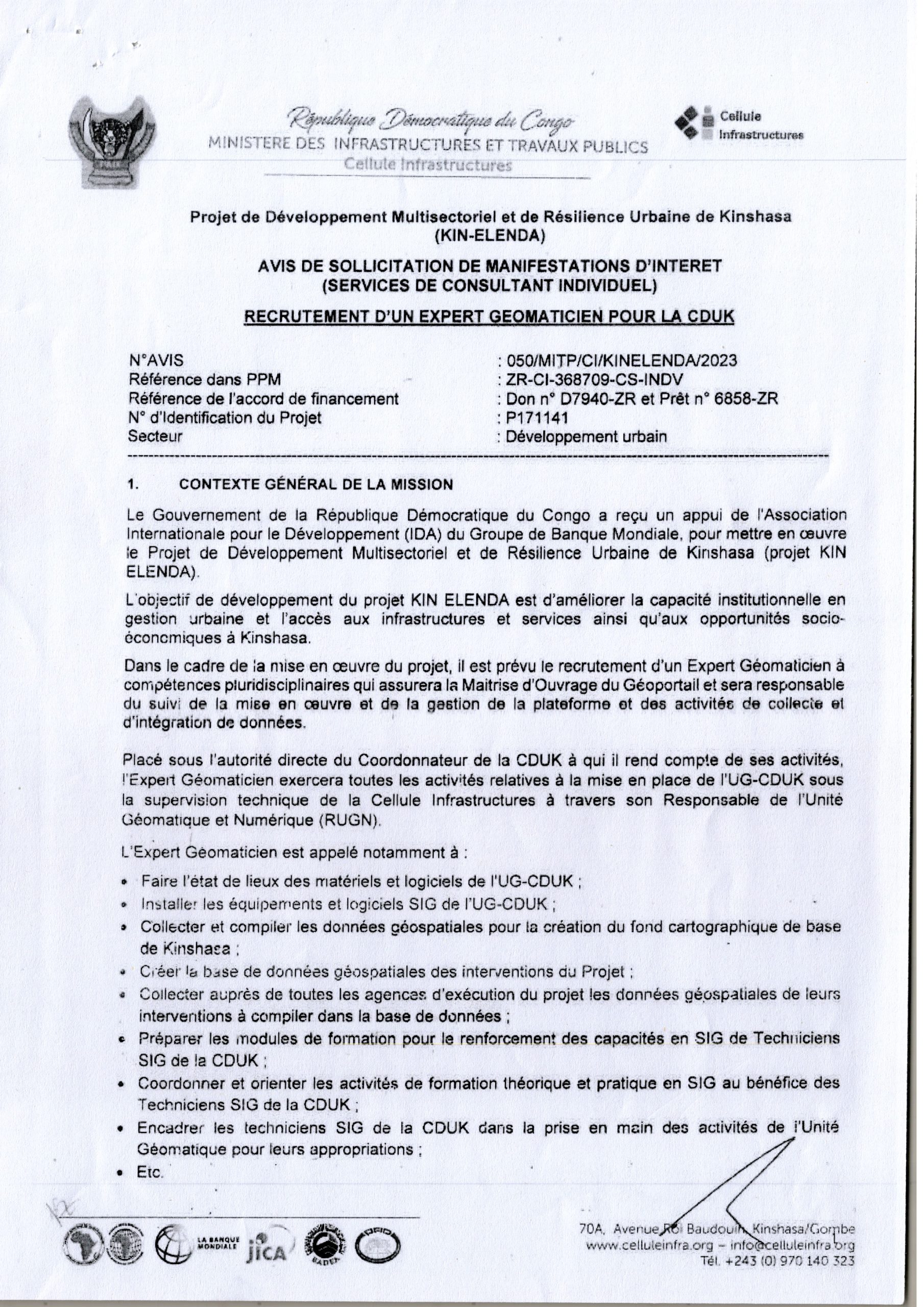 RECRUTEMENT D’UN EXPERT GÉOMATICIEN POUR LA CDUK .
