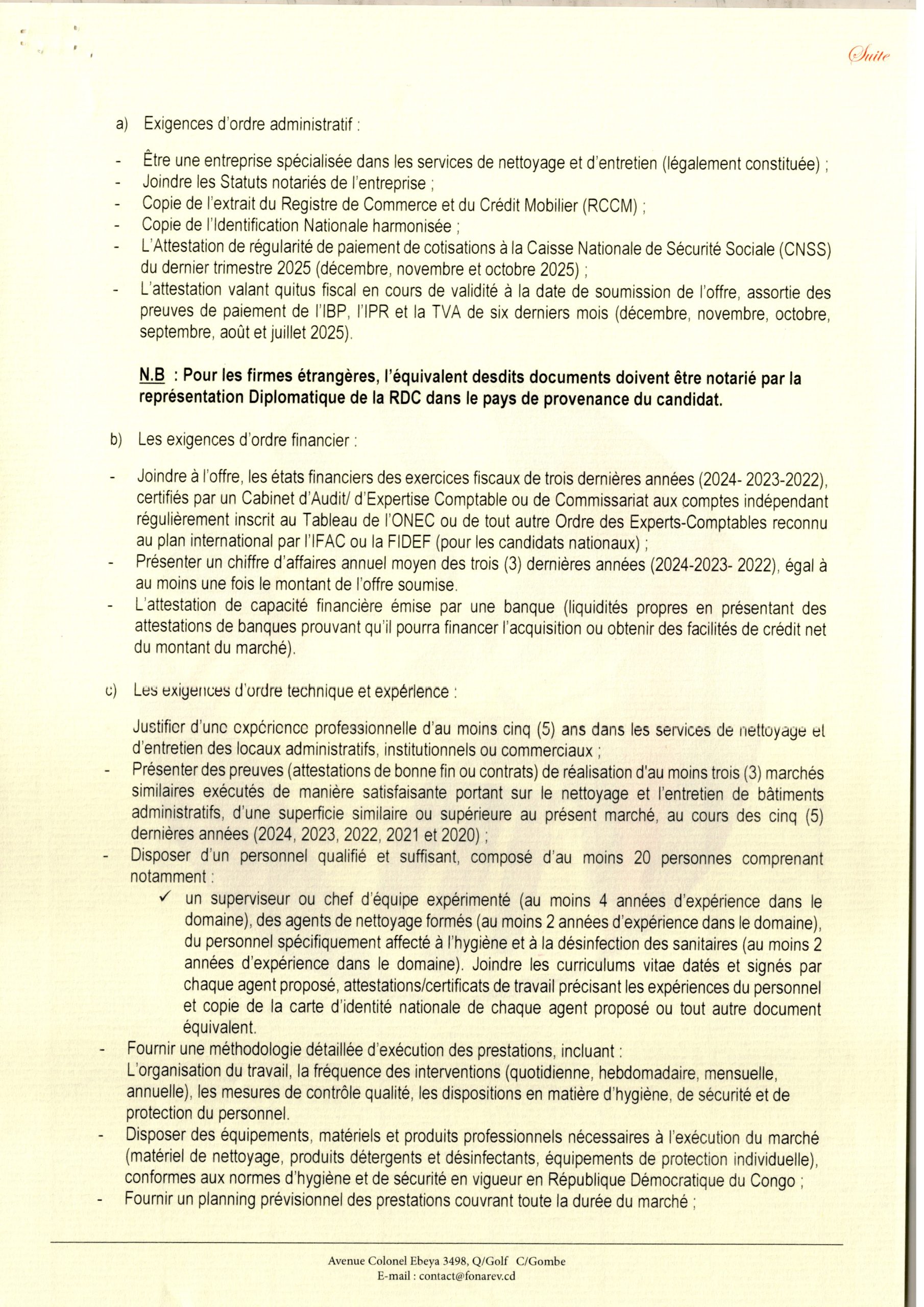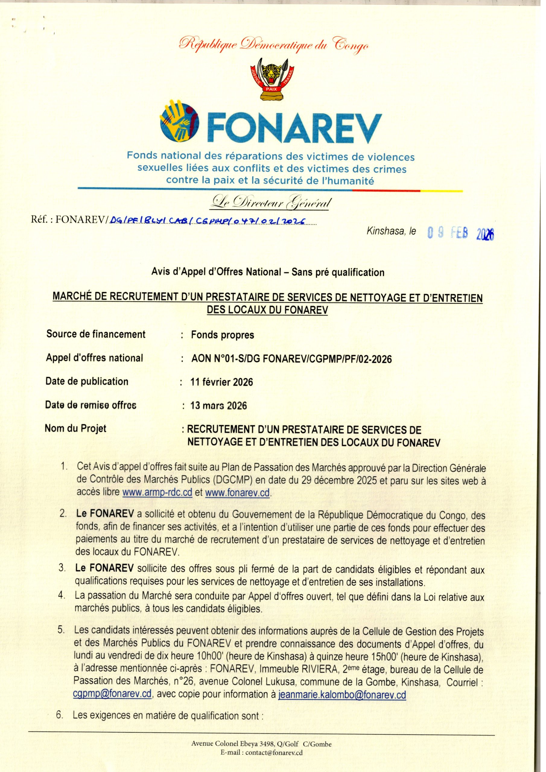 Recrutement d’un prestataire de services de nettoyage et d’entretien des locaux du FONAREV.