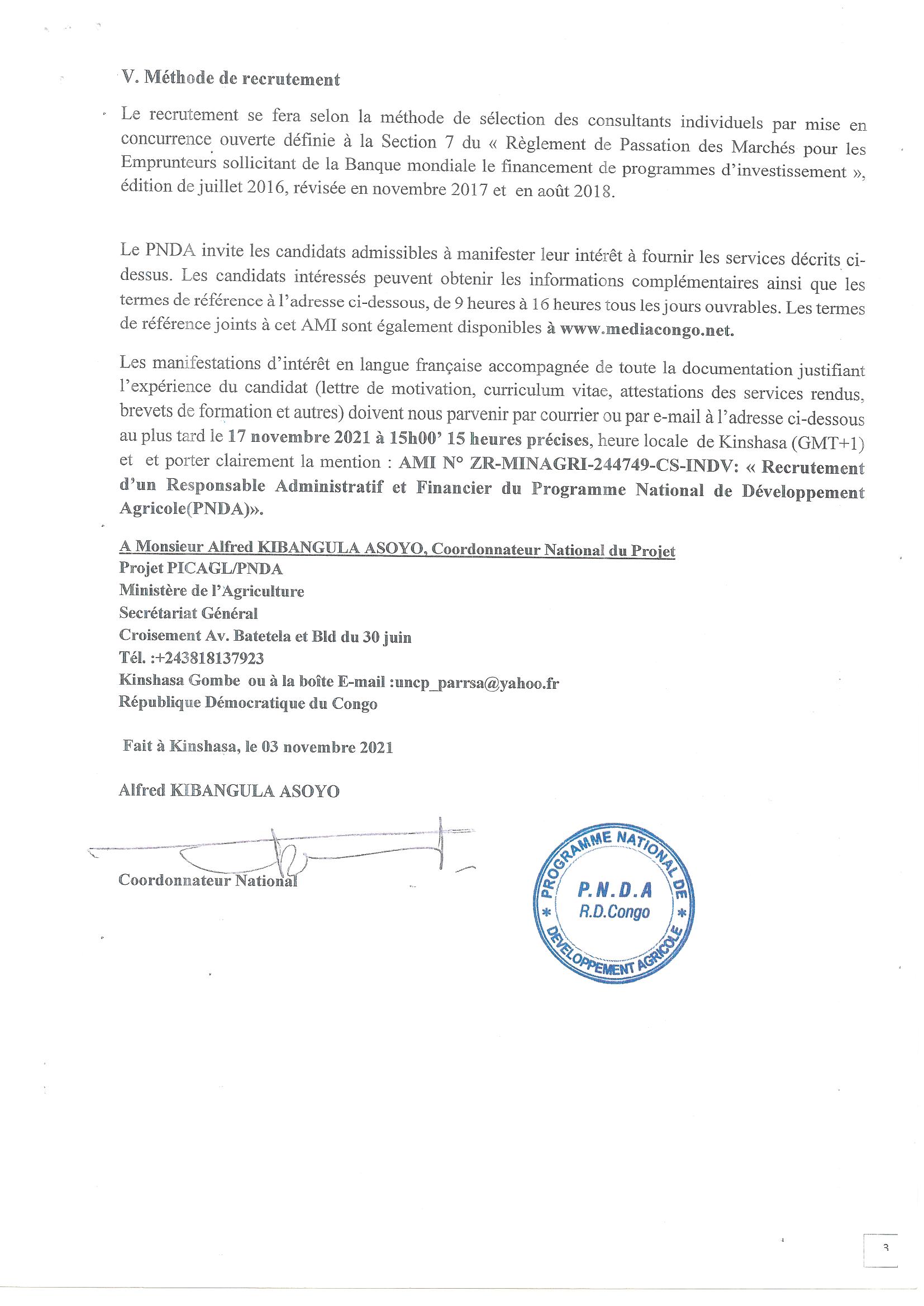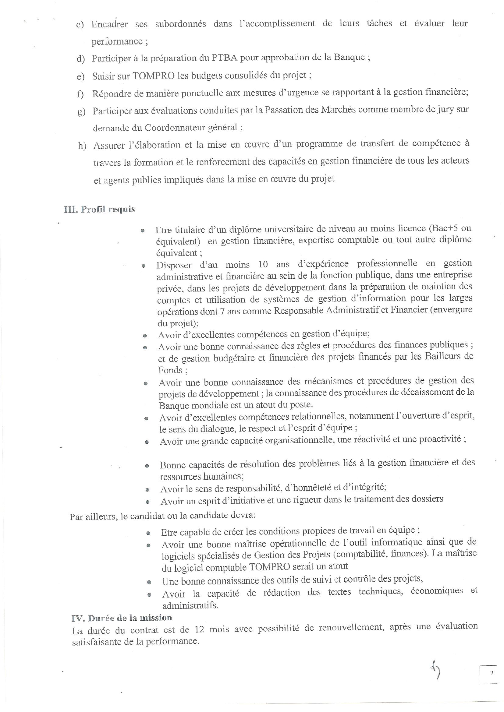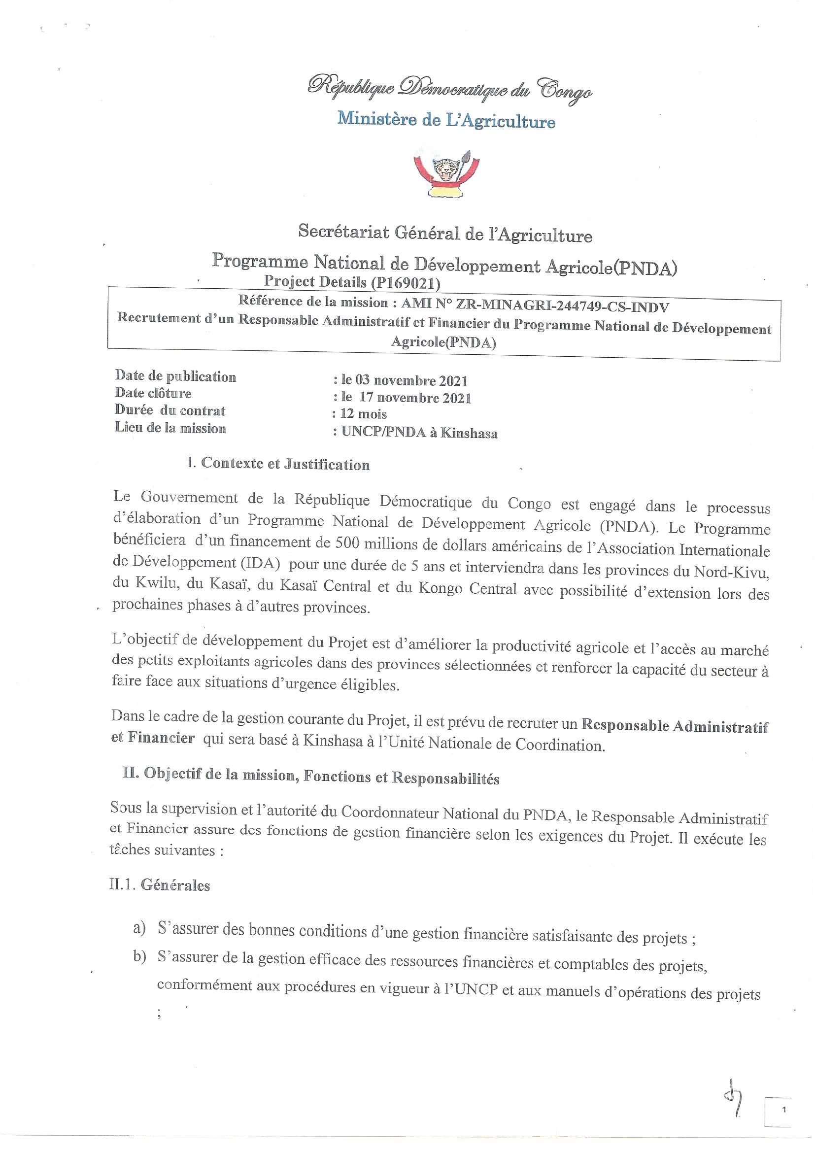Recrutement d’un responsable administratif et financier du programme national de développement agricole (PNDA)