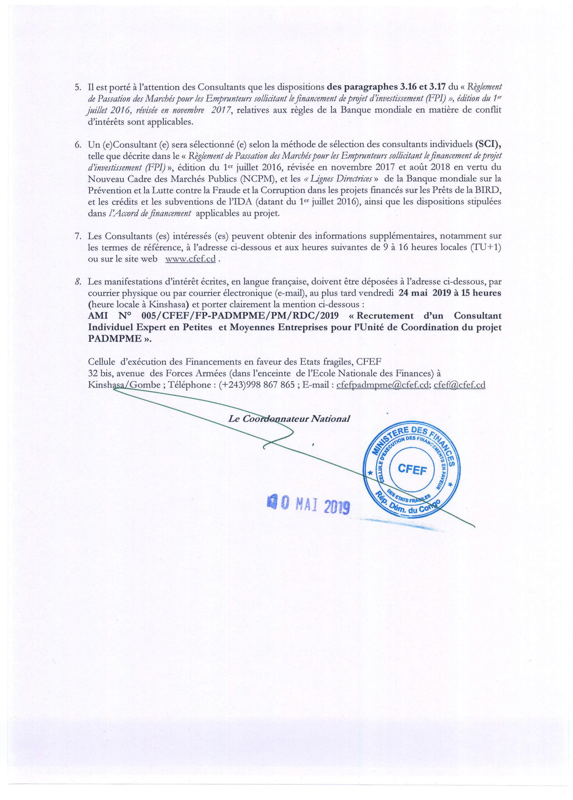 Recrutement d’un(e) Consultant(e) individuel (le) Expert en Petites et Moyennes Entreprises pour l’Unité de Coordination du projet PADMPME.
