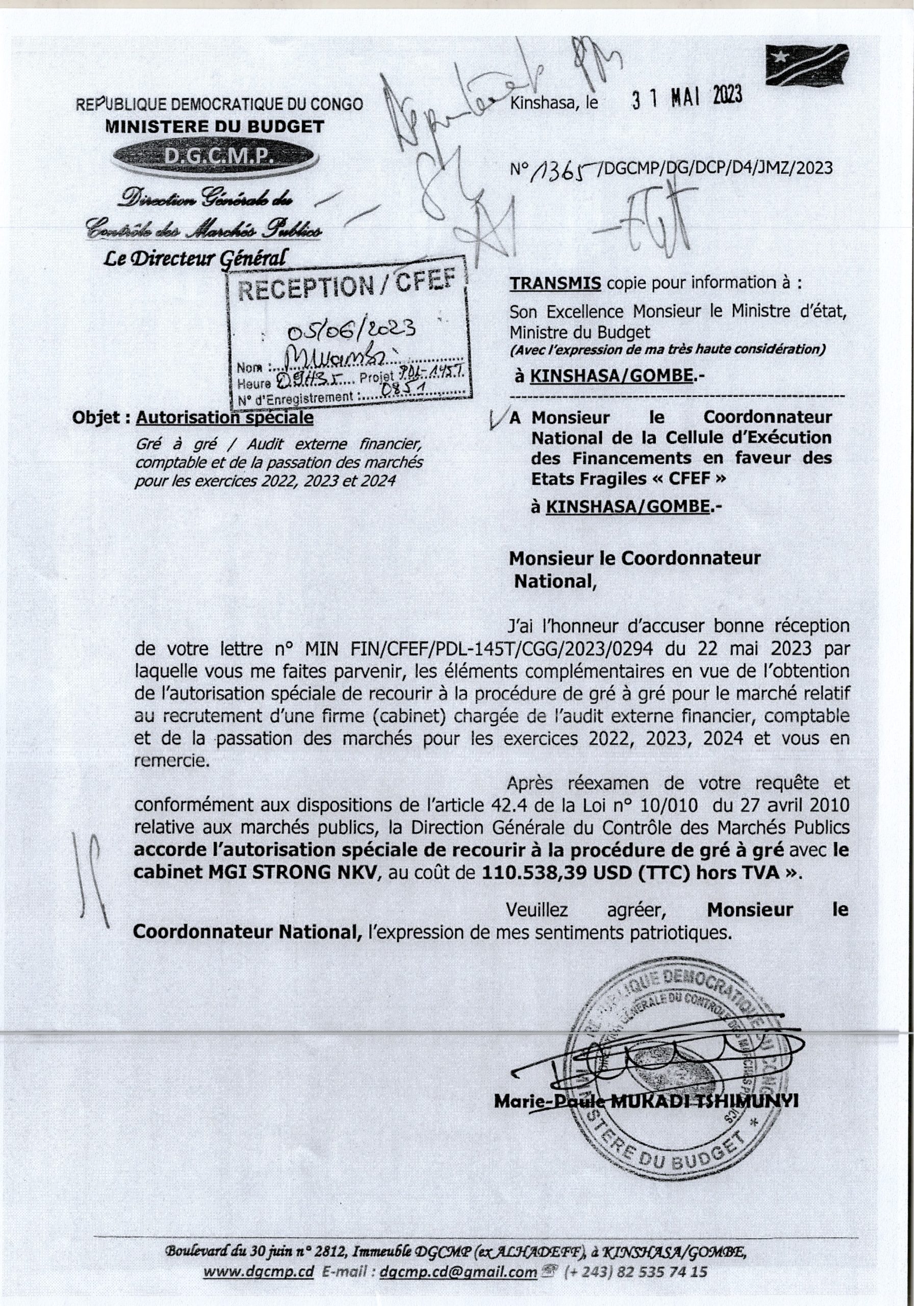 Recrutement d’une firme (cabinet) chargée de l’Audit externe financier, comptable et de la passation des marchés pour les exercices 2022, 2023, 2024.