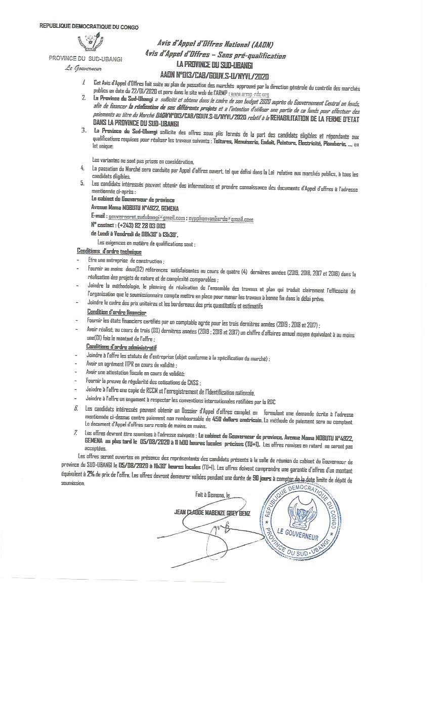 RÉHABILITATION DE LA FERME D’ETAT DANS LA PROVINCE DU SUD UBANGI