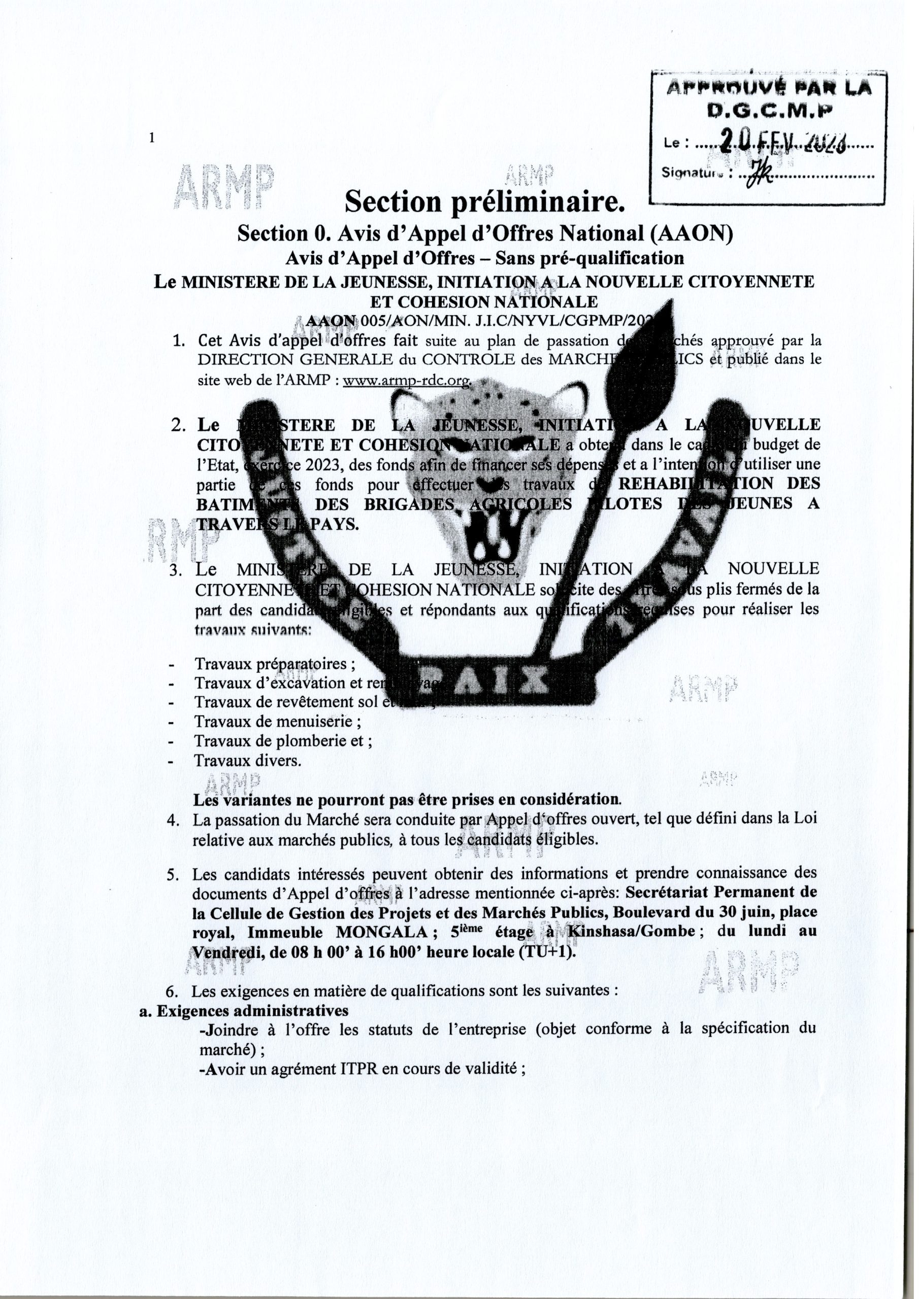 Réhabilitation des bâtiments des brigades agricoles pilotes des jeunes à travers le Pays.