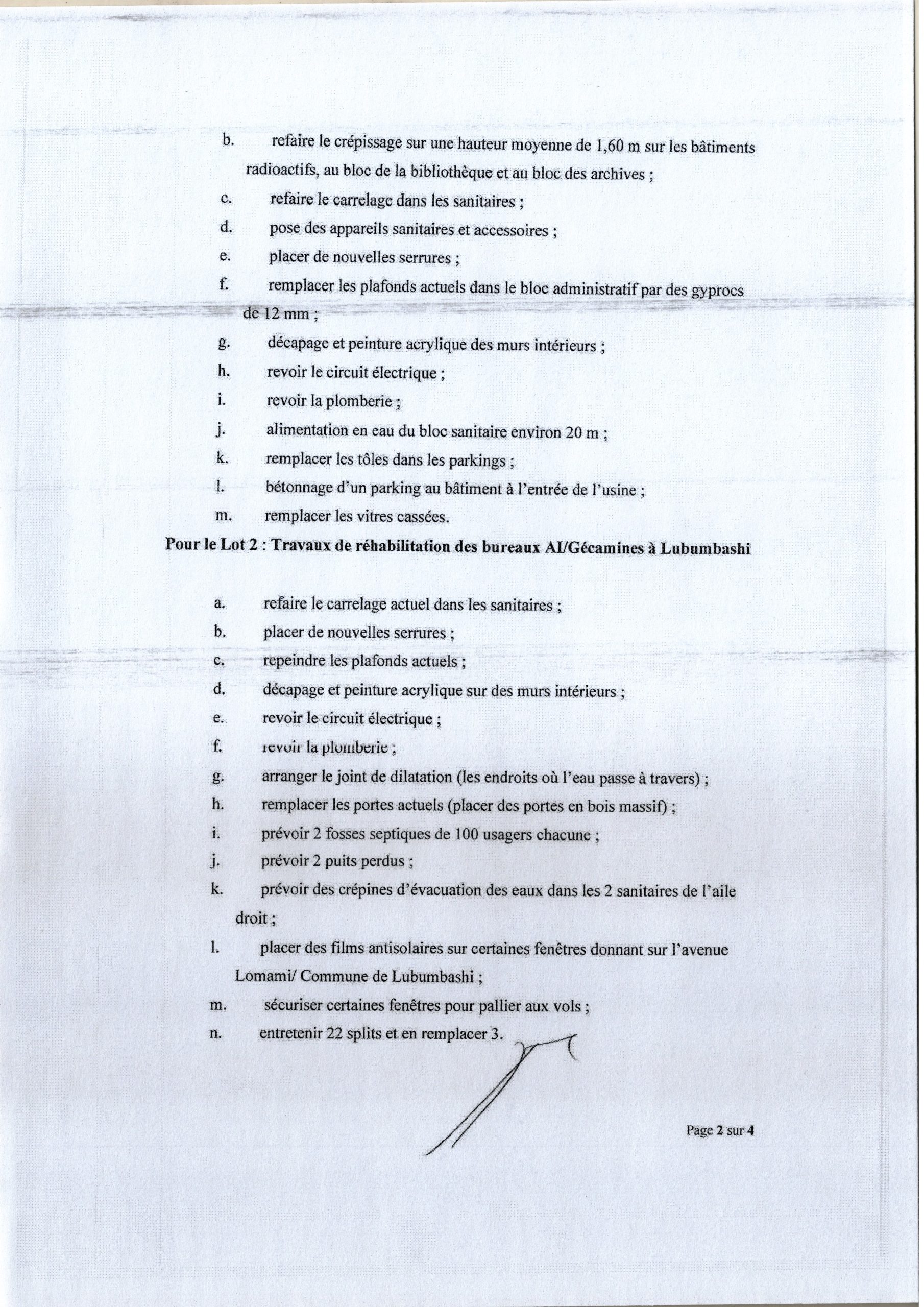 Réhabilitation des bureaux de la Gecamines (HST et AI SUD) à Lubumbashi en deux lots.