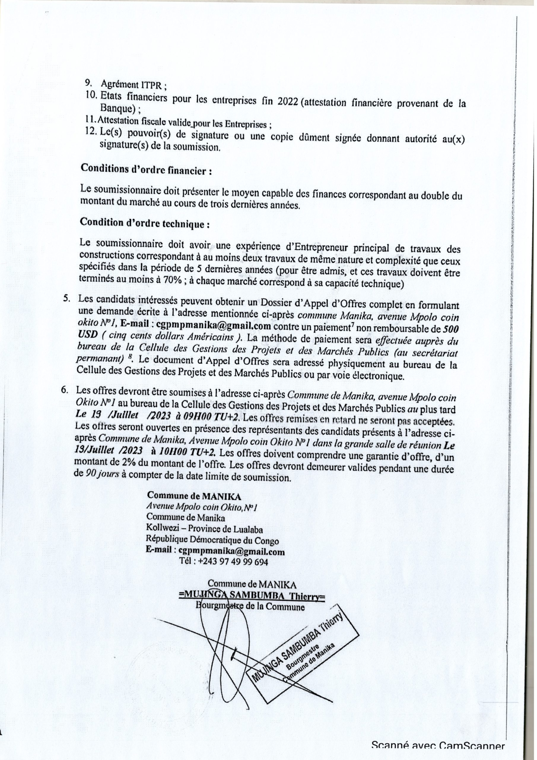 Réhabilitation, réfection et asphaltage de 150 mètres de l’avenue mutshatsha au Quartier kayeke Commune de Manika.