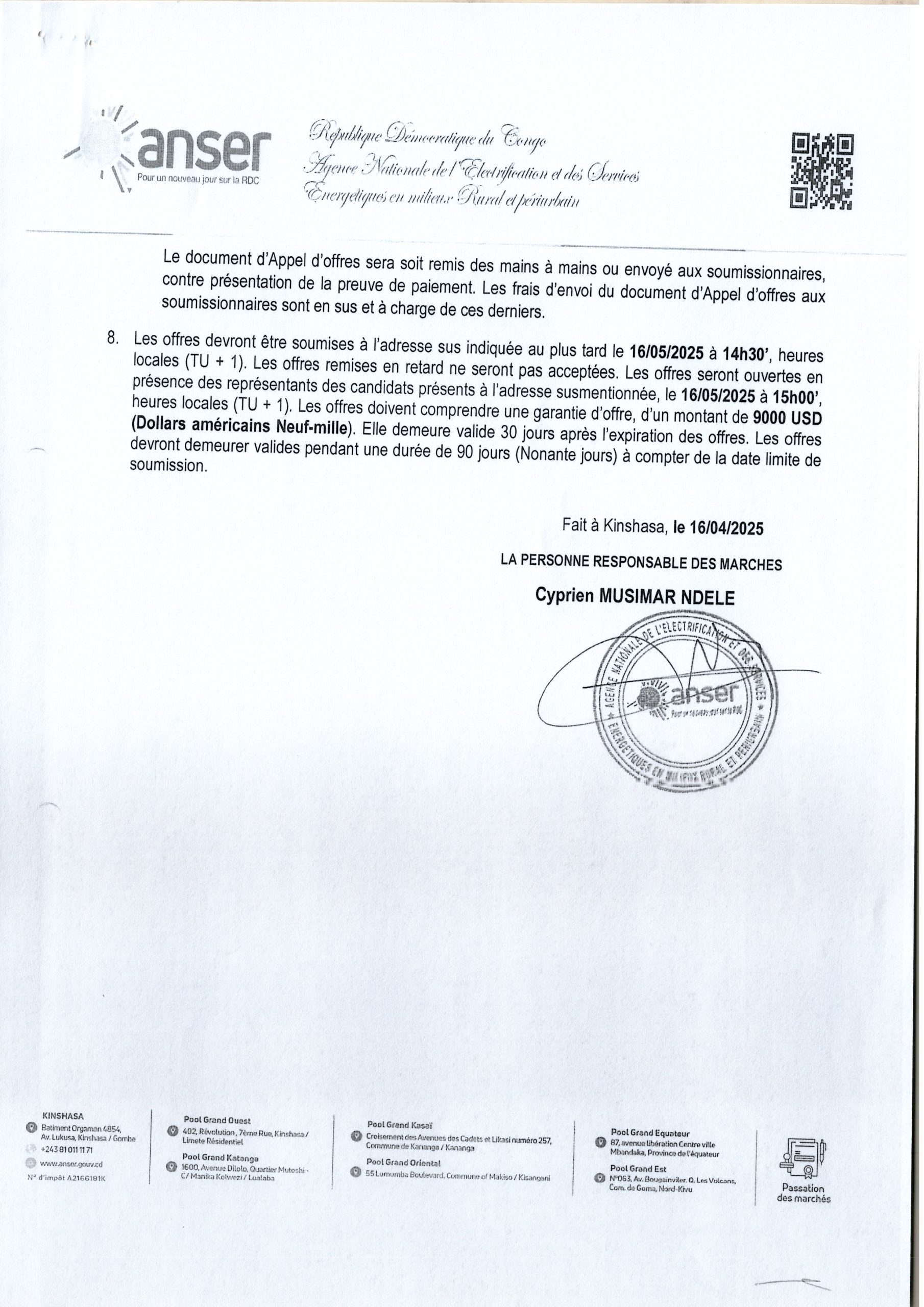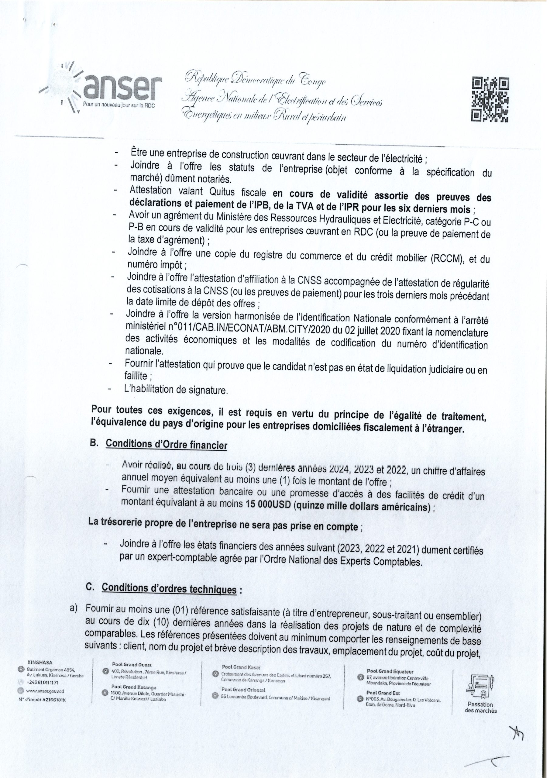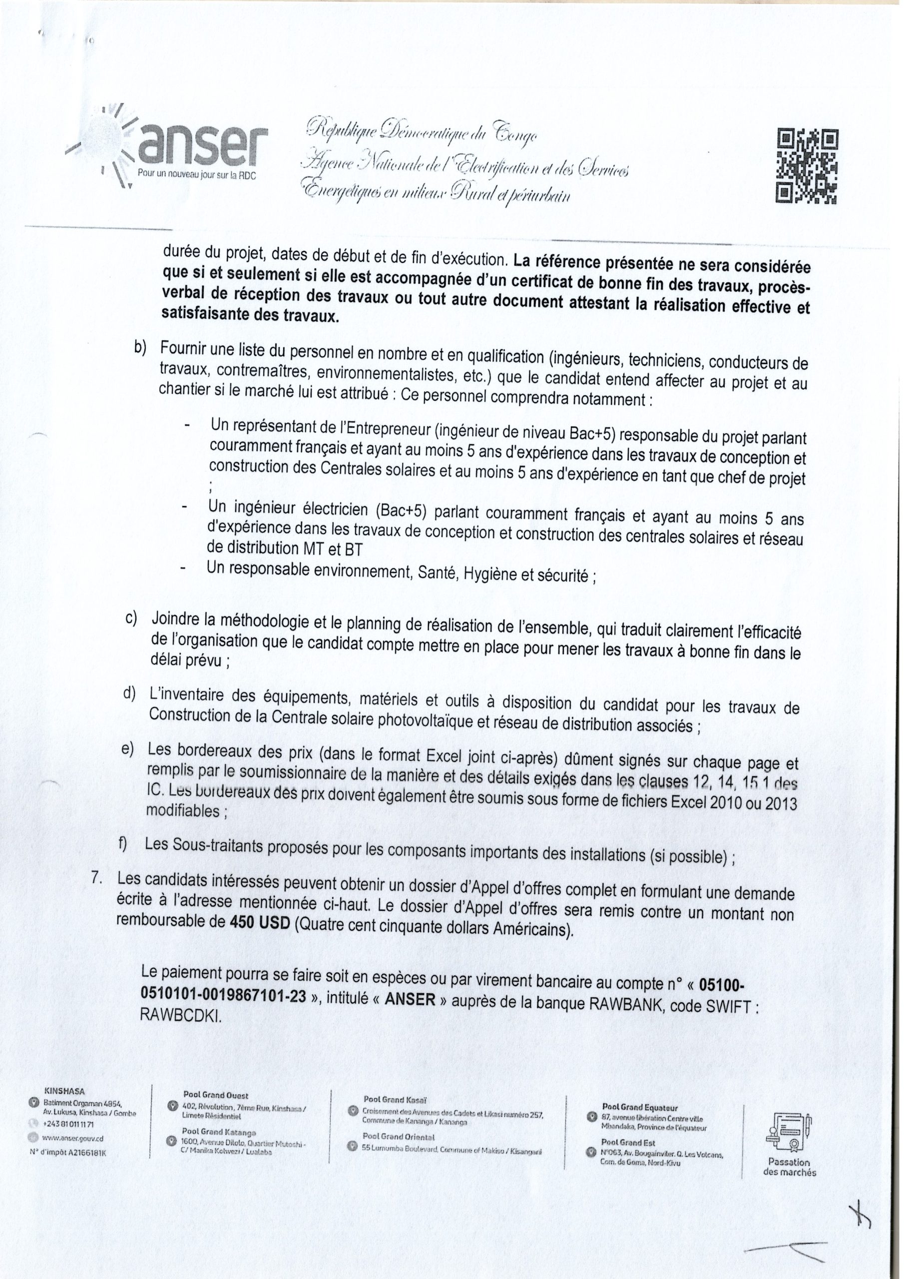 Travaux de construction de la central solaire photovoltaïque de LUIZA (200KWC) pour l’électrification du chef-lieu du Territoire de Luiza dans la Province du Kasaï Central.