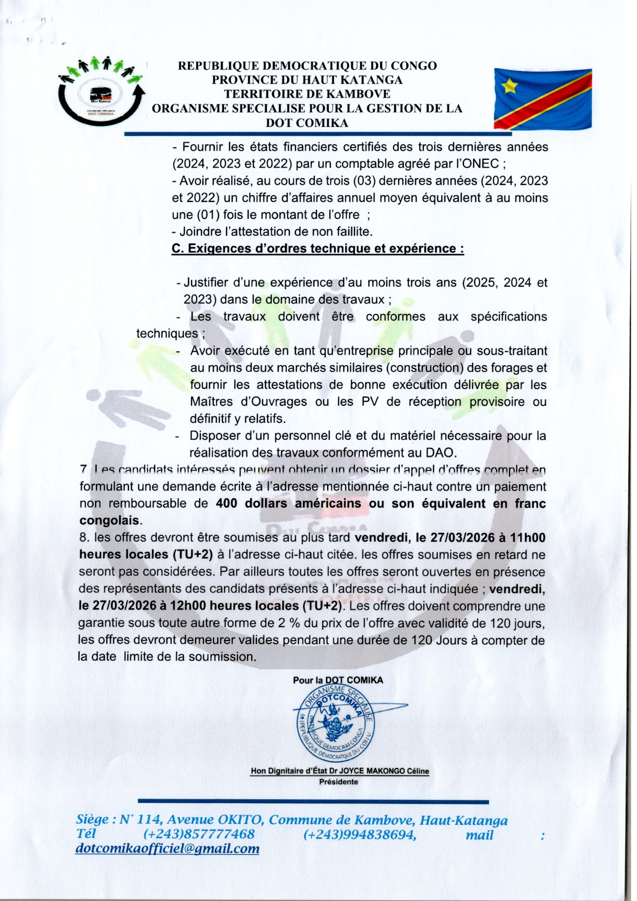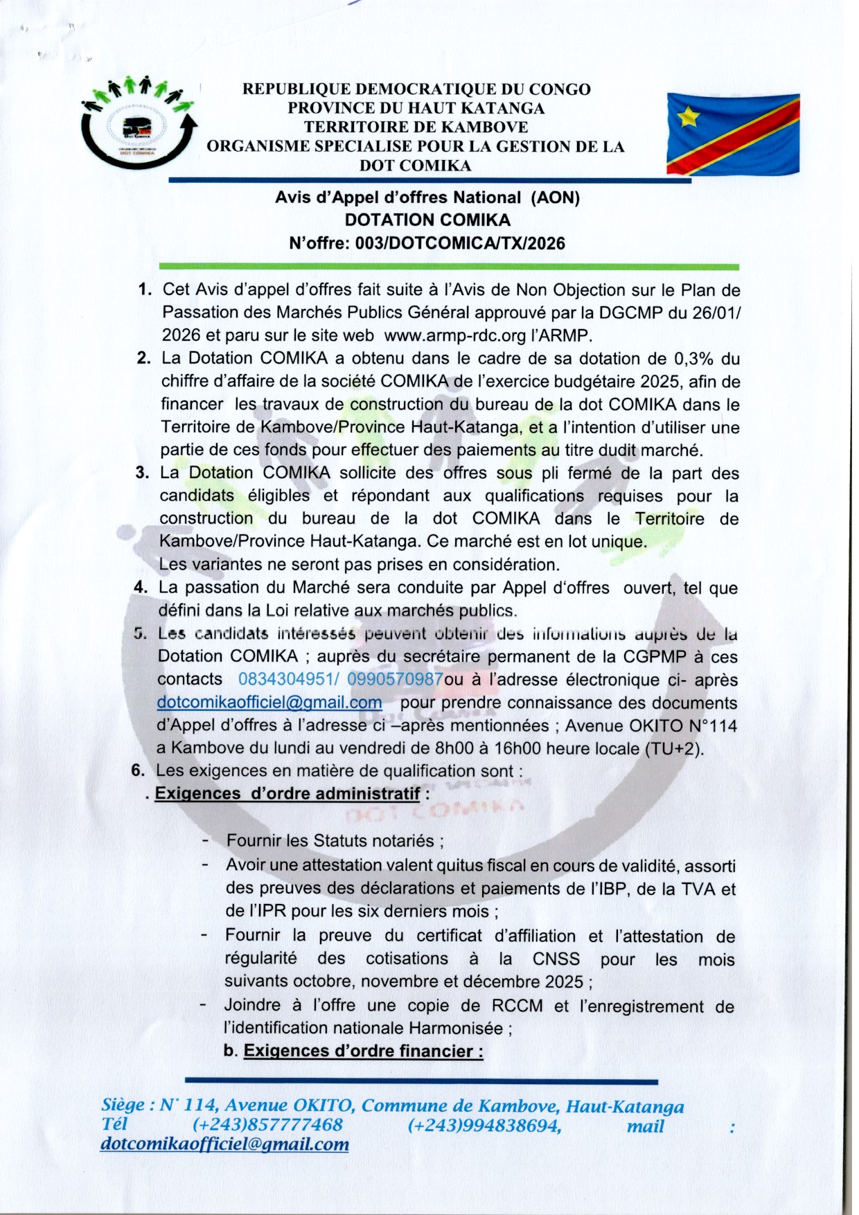 Travaux de construction du bureau de la dans la le Territoire de Kambove/Province Haut-Katanga