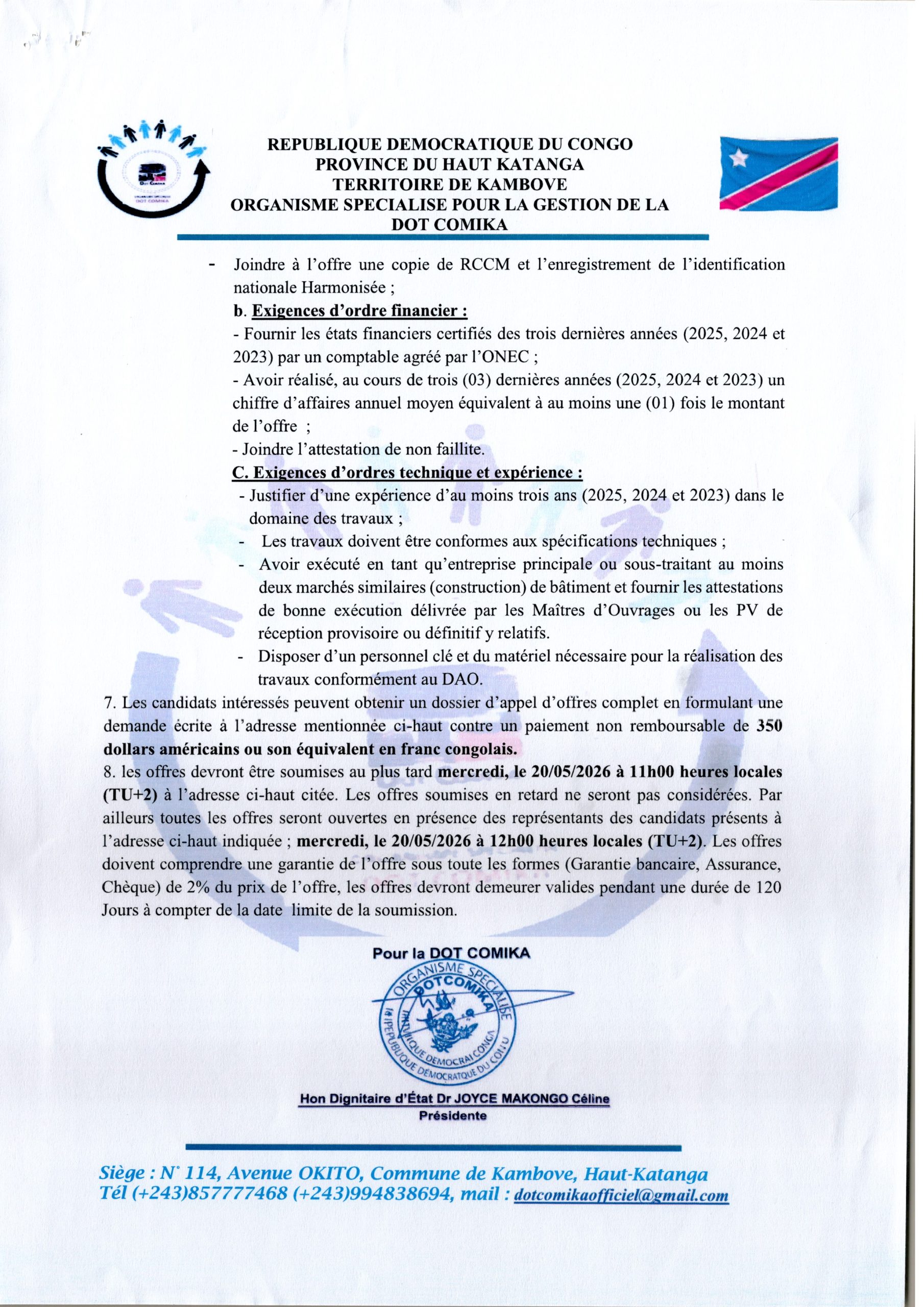 Travaux de construction d’un centre de santé à Makungu, Territoire de Kambove dans la Province du Haut-Katanga.