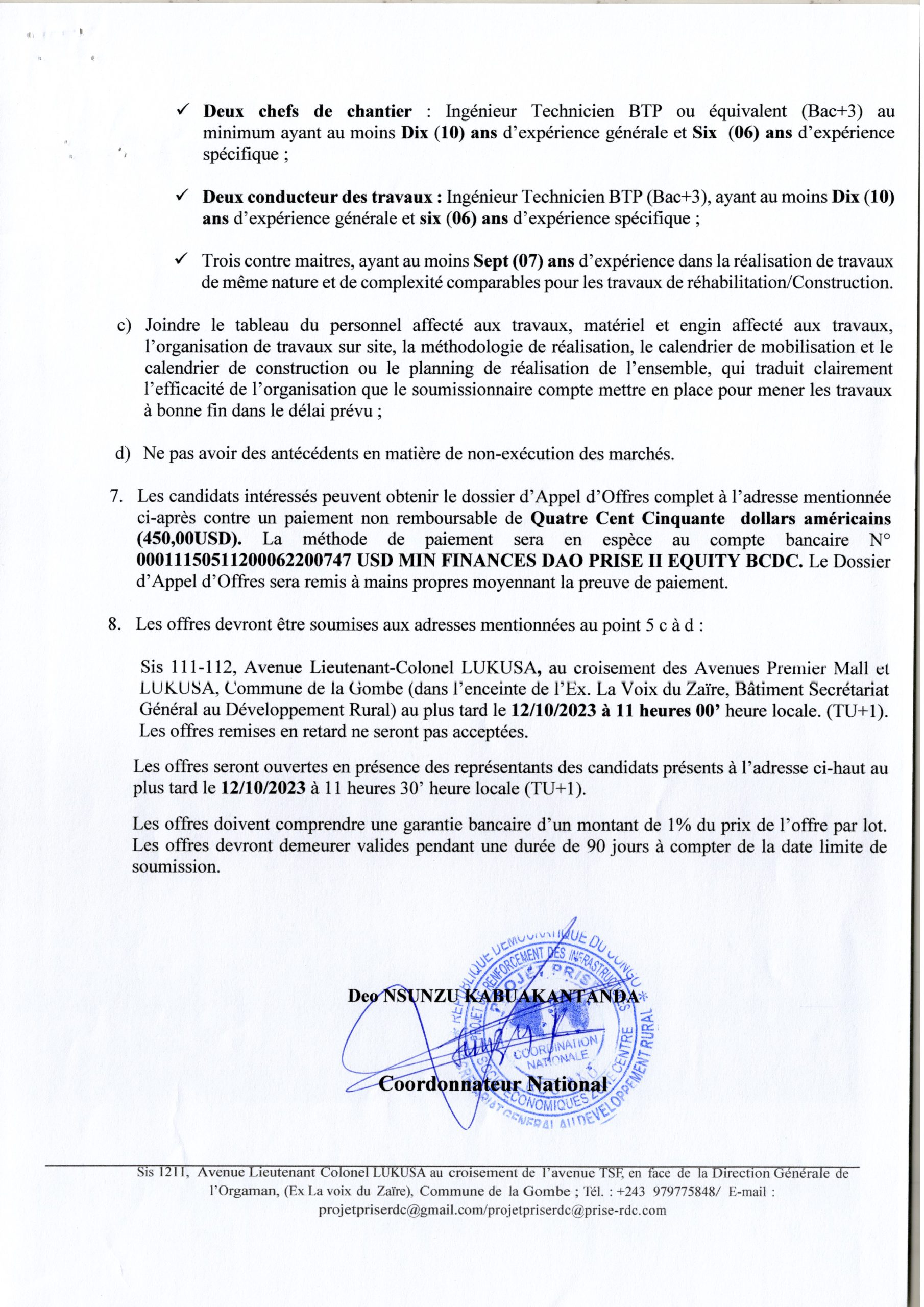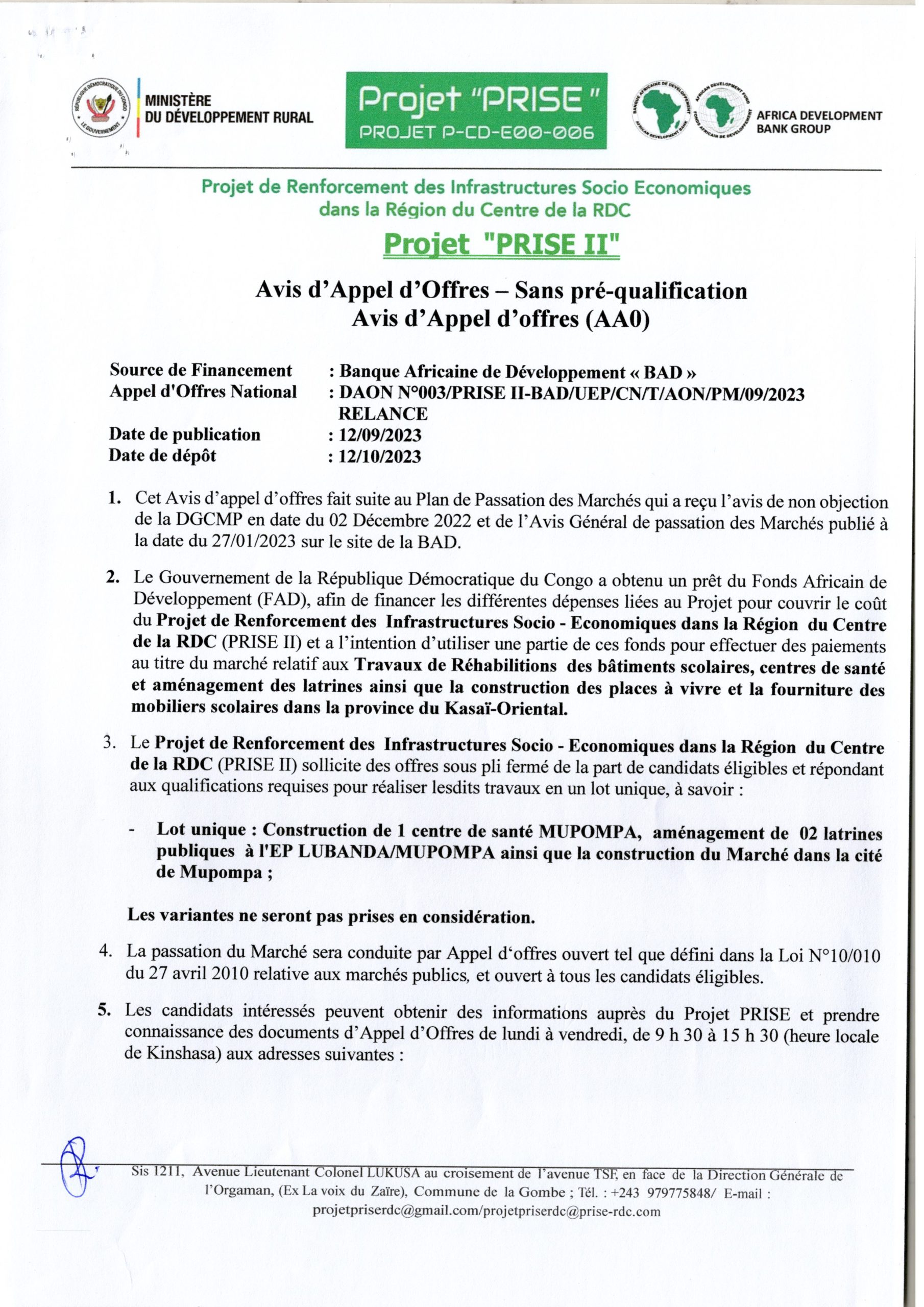 Travaux de Réhabilitation des bâtiments scolaires, centres de Santé et aménagement des latrines ainsi que la construction des places à vivre…….