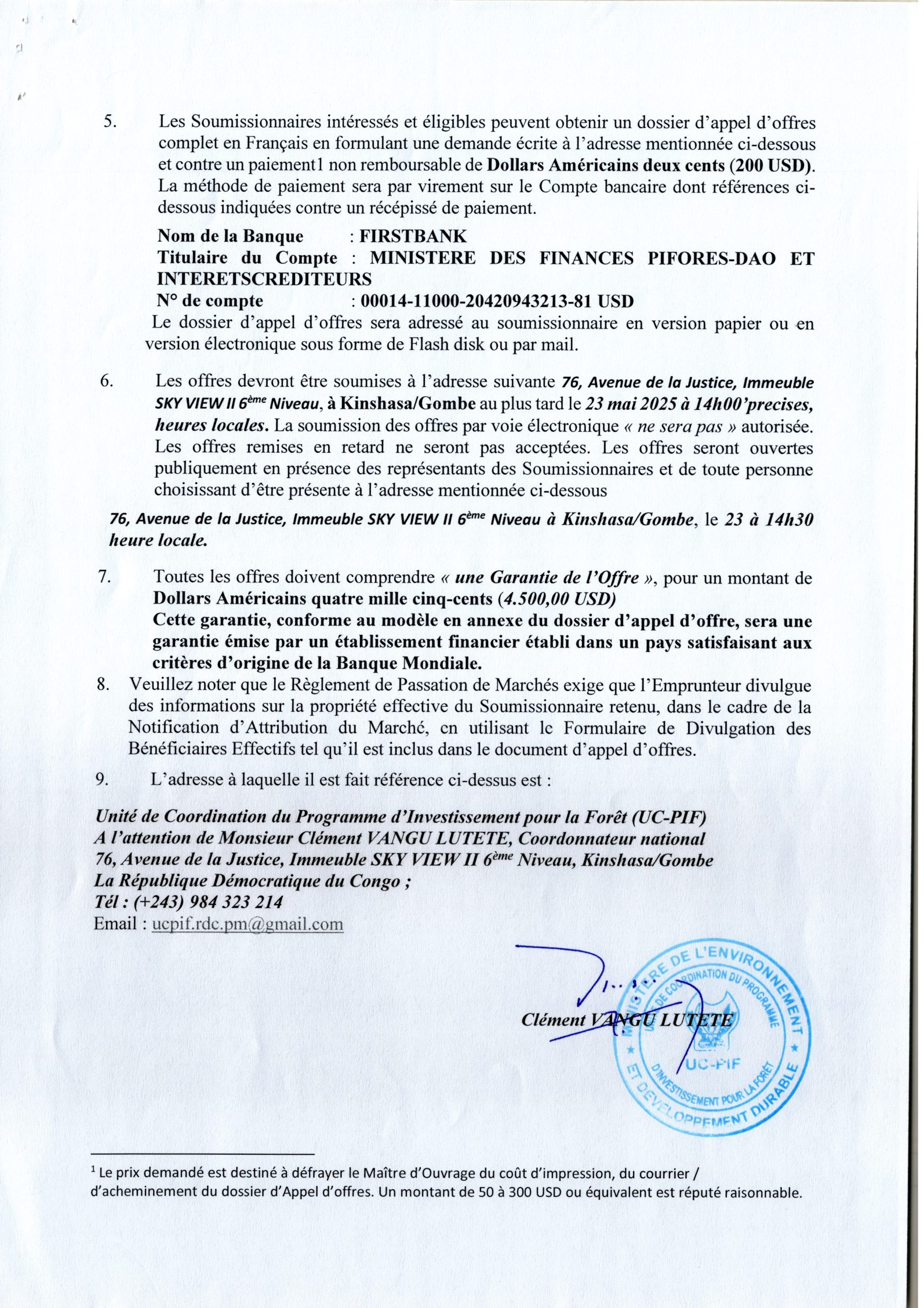 MINISTERE DE L'ENVIRONNEMENT ET DEVELOPPEMENT DURABLE