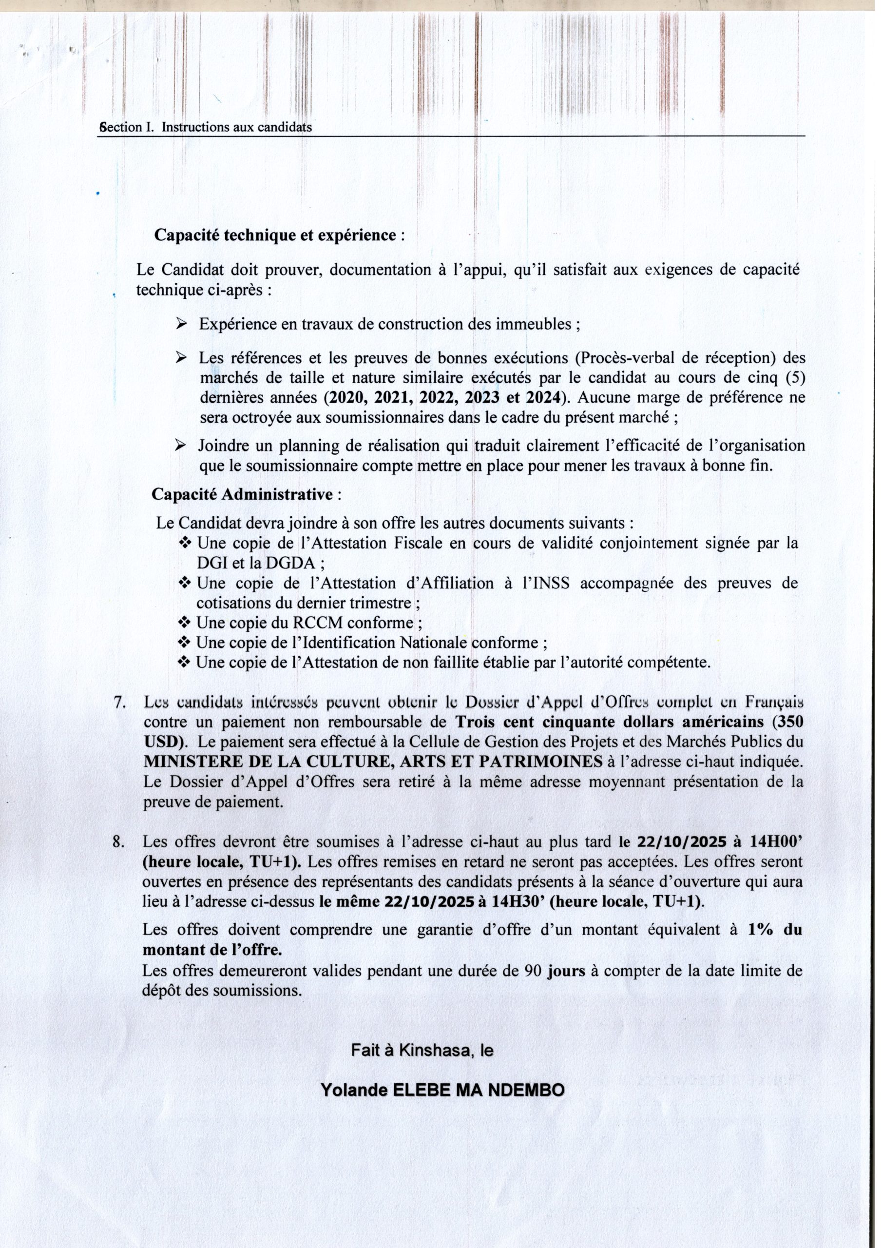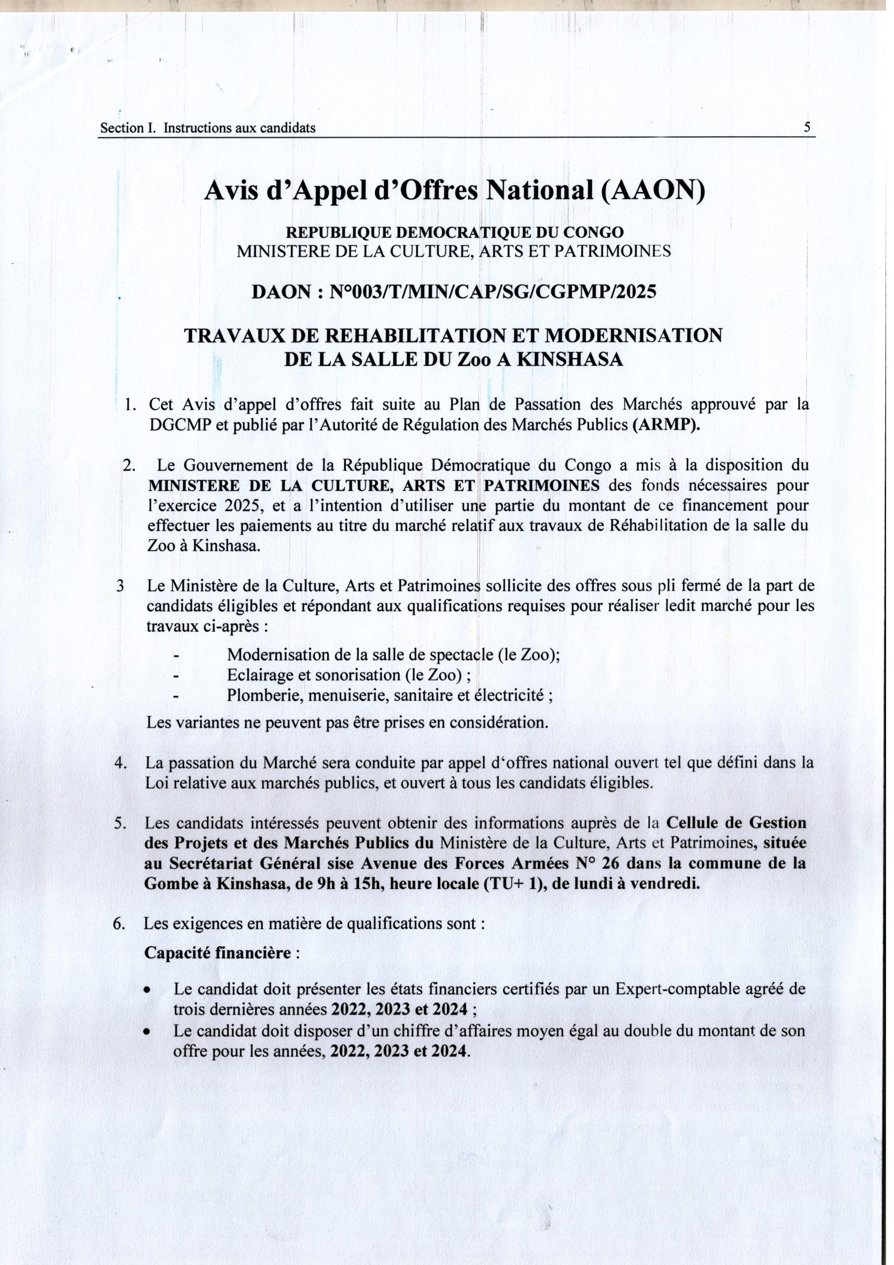 MINISTERE DE LA CULTURE, ARTS ET PATRIMOINE