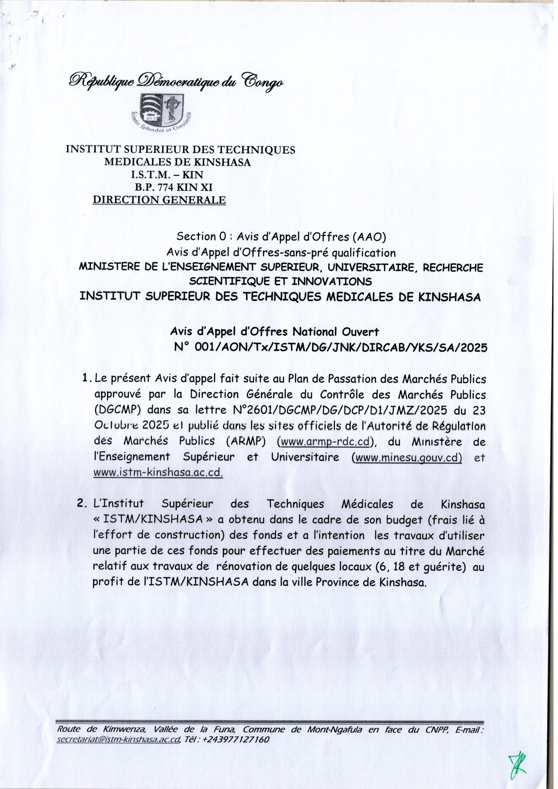 INSTITUT SUPERIEUR DES TECHNIQUES MEDICALES