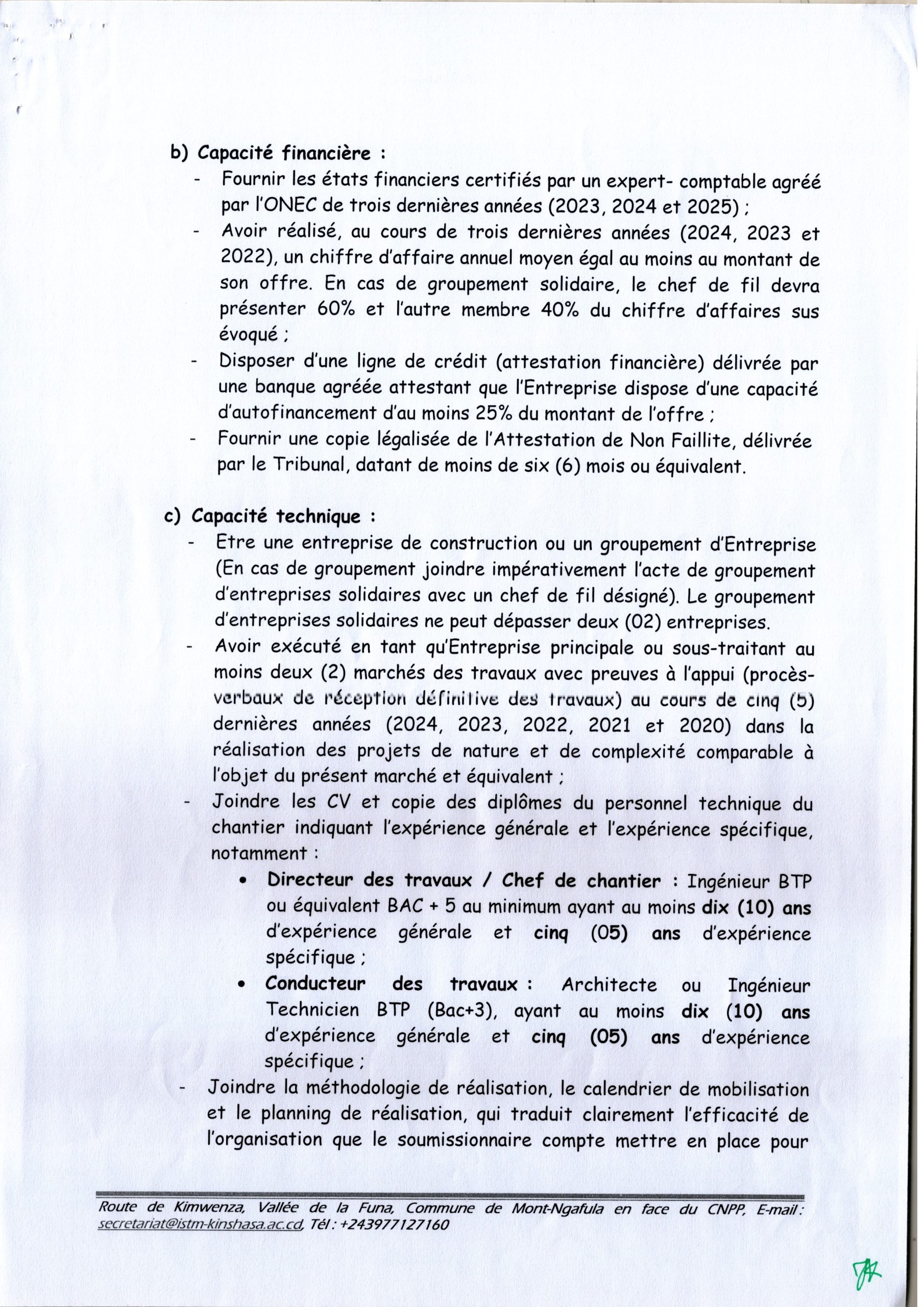 Travaux de rénovation de quelques locaux (6,18 et guérite) au profit de l’ISTM.